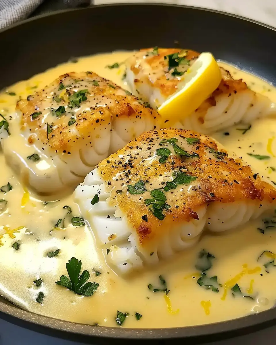 PrintBaked Cod in Coconut Lemon Cream Sauce: A Juicy Delight for Dinner