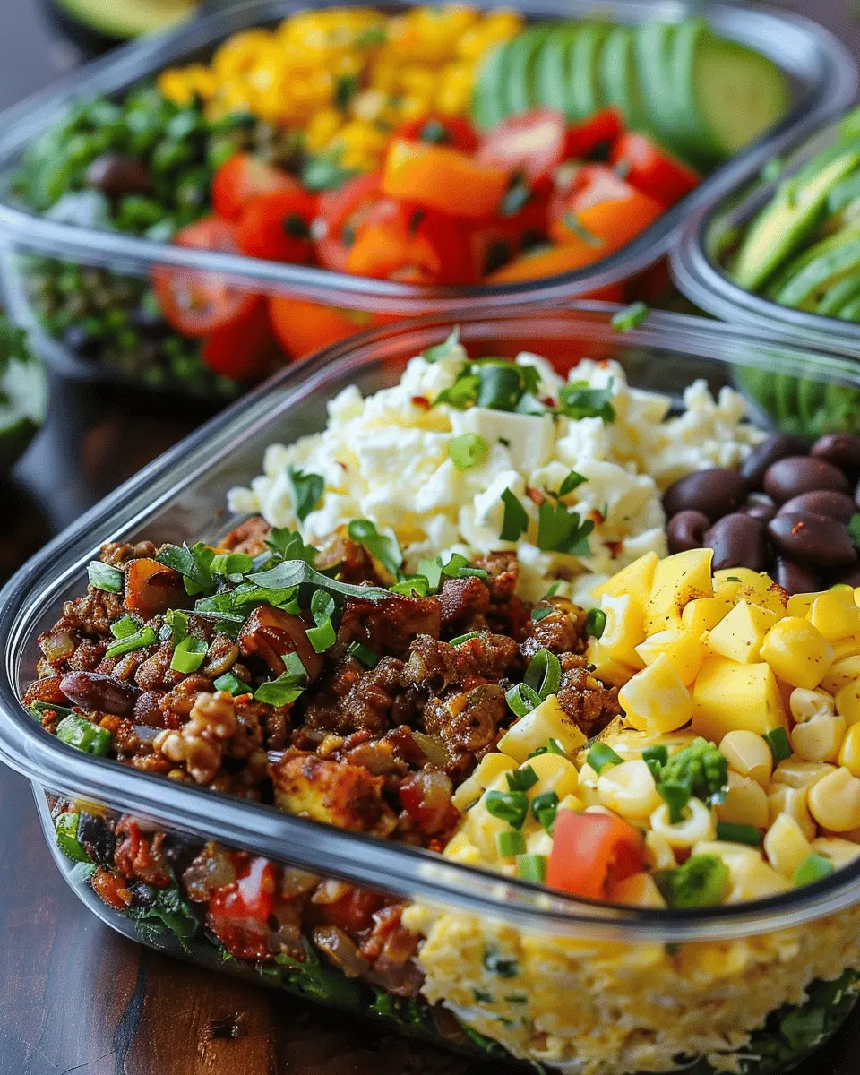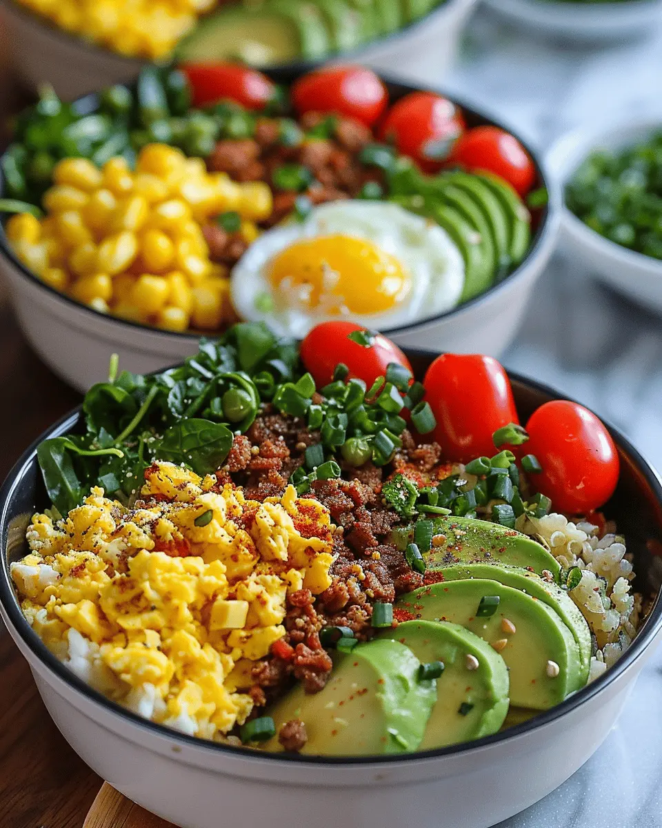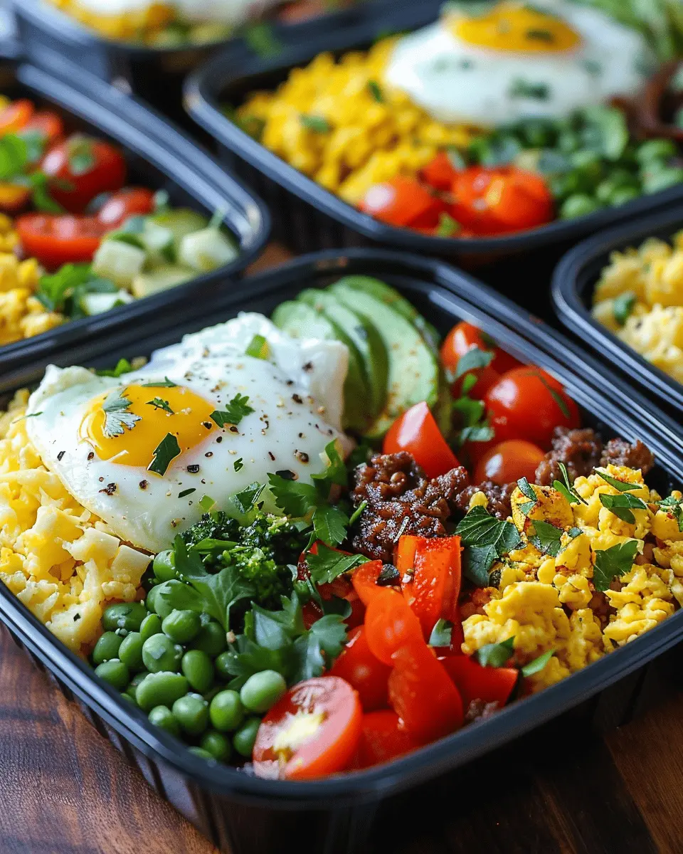 For those looking to indulge in delicious Breakfast Scramble Meal Prep Bowls without meat, the possibilities are endless. Incorporate robust vegetables like bell peppers, spinach, and cherry tomatoes to add both flavor and nutrition. Consider adding:
