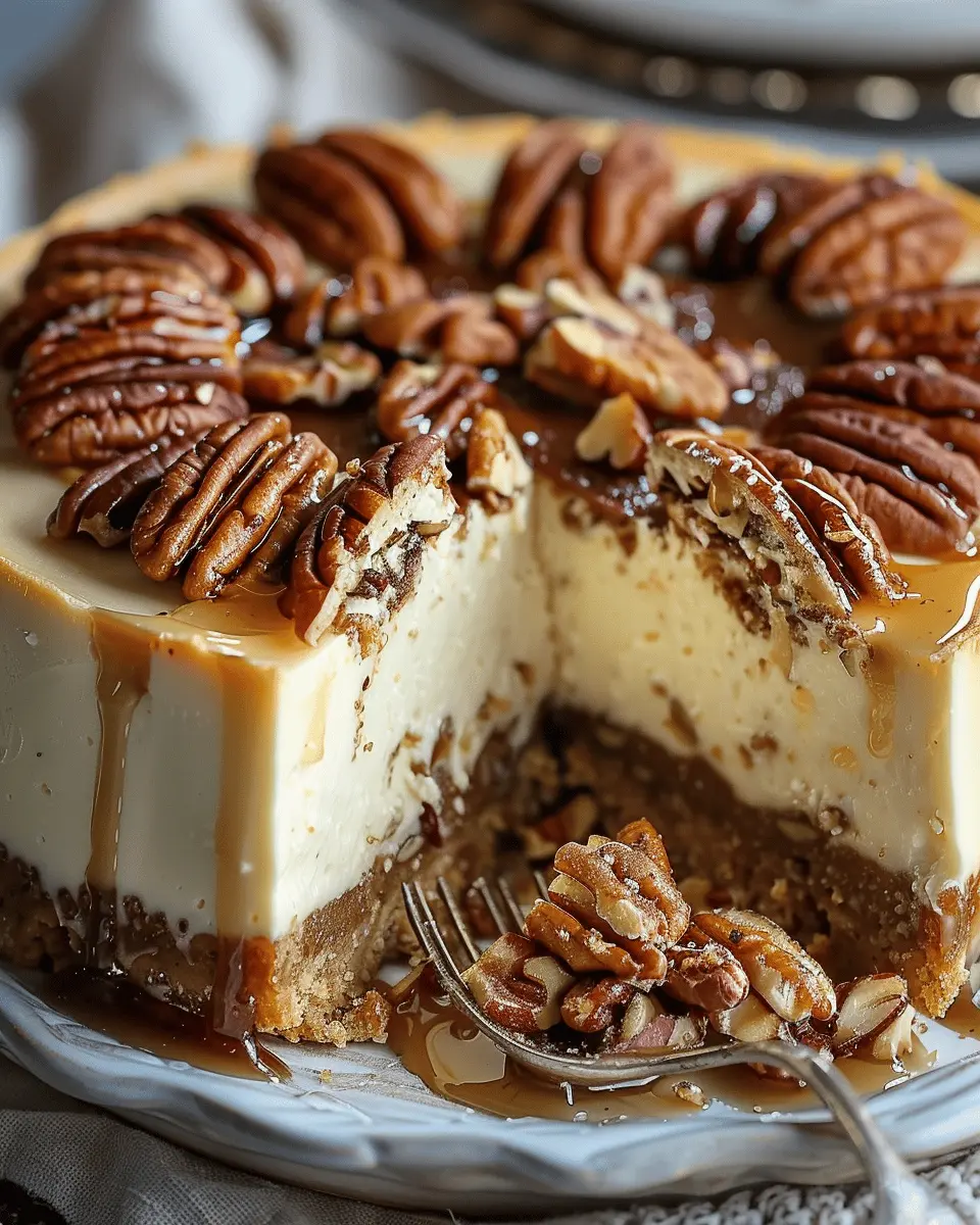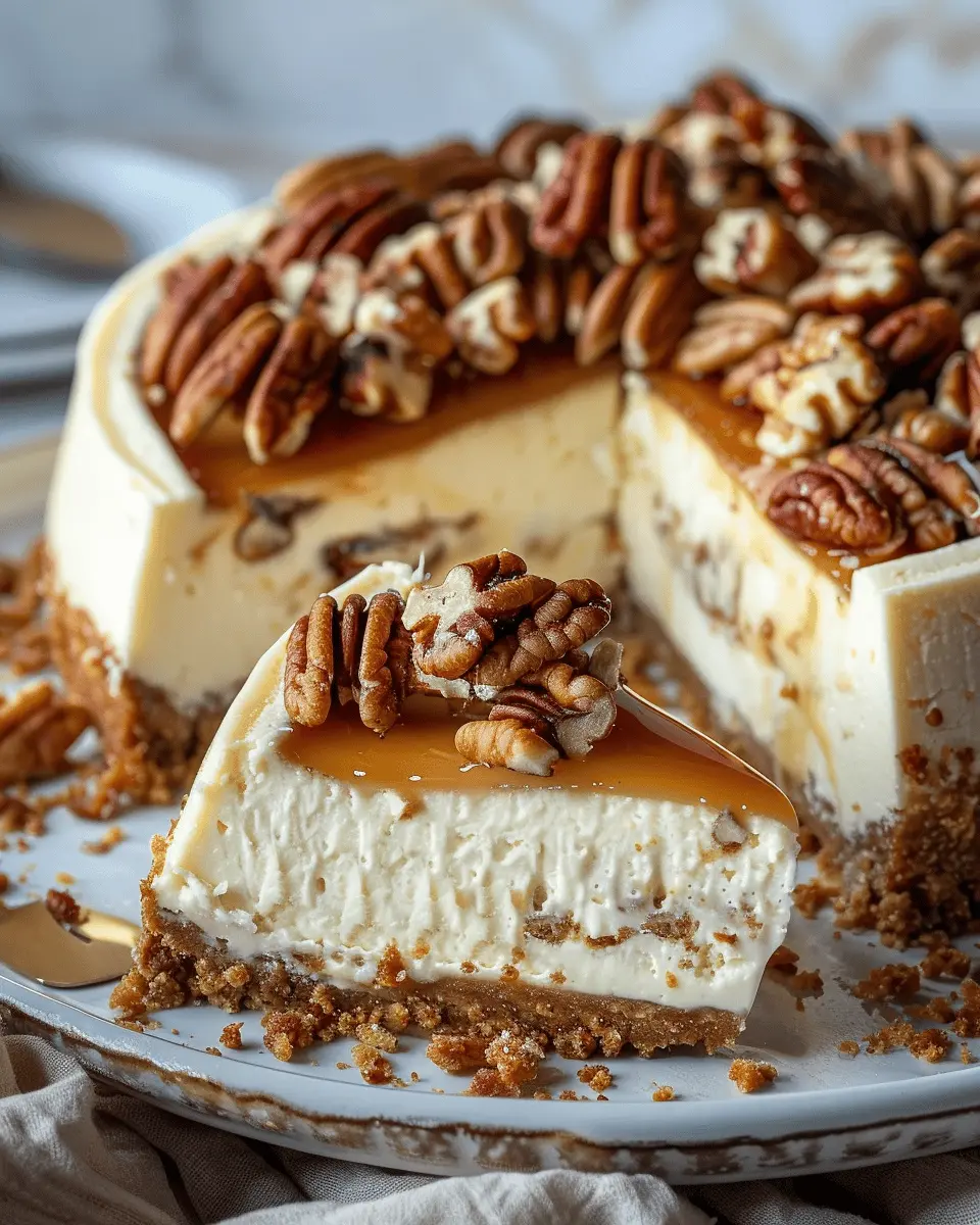 An indulgent homemade delight combining the rich flavors of browned butter and pecans in a creamy cheesecake.