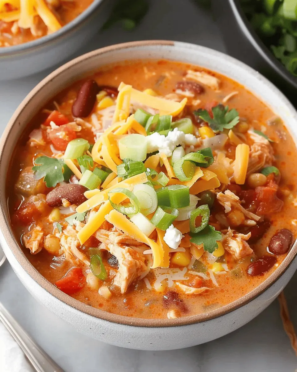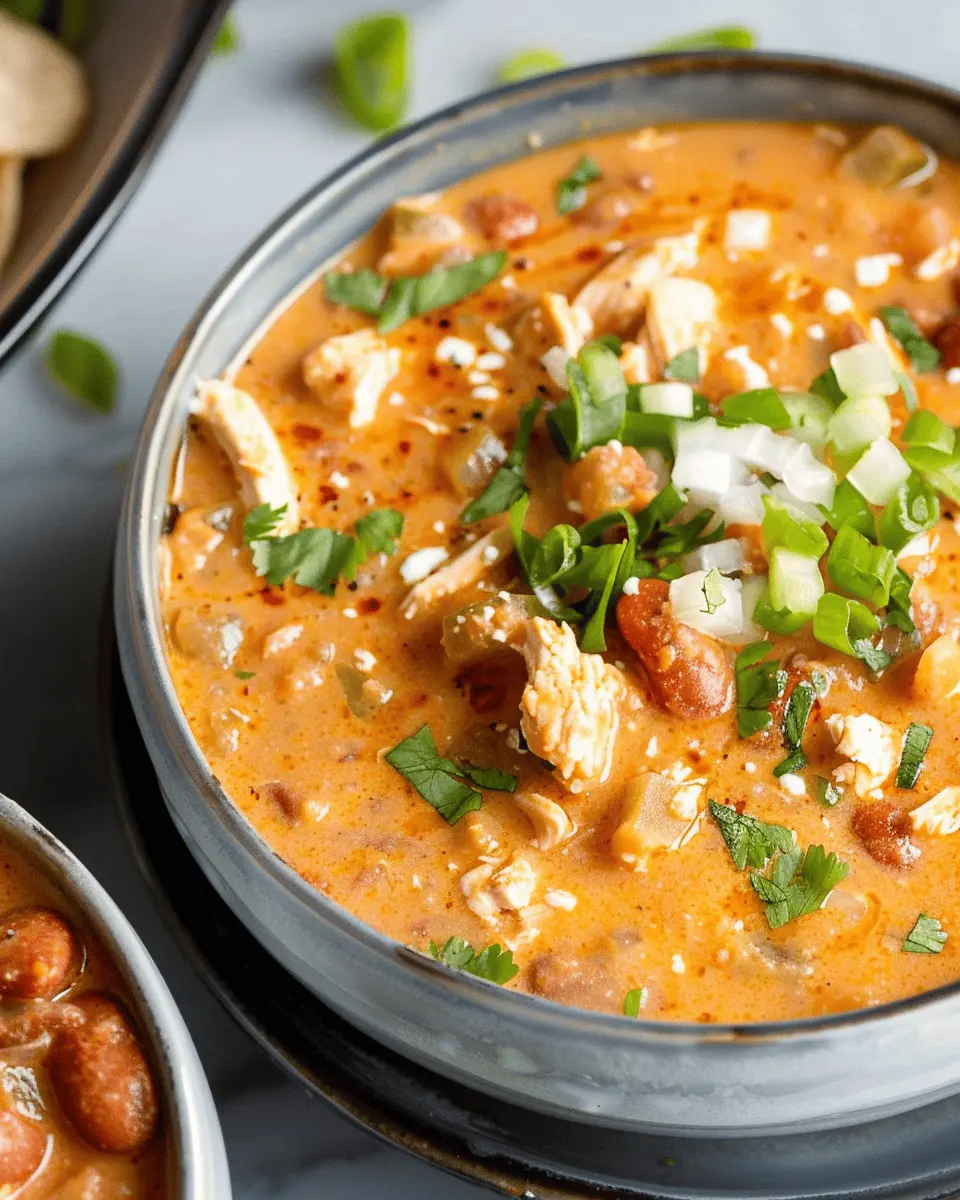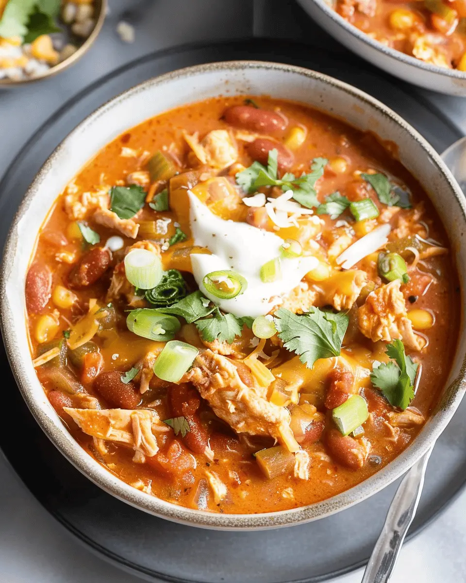 In summary, Buffalo Chicken Chili is a delicious and satisfying dish that’s perfect for both weeknight dinners and gatherings with friends. The blend of tender chicken, zesty buffalo sauce, and hearty beans creates a delightful meal that warms the soul and tantalizes the taste buds. Plus, it’s easy to customize with your favorite toppings like fresh cilantro or a dollop of Greek yogurt for a healthier twist.