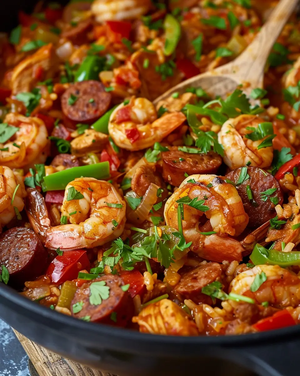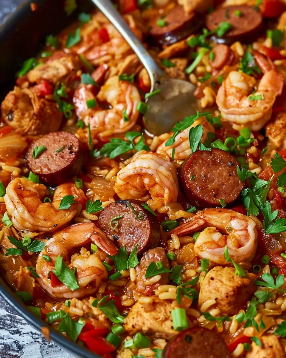 Cajun Jambalaya is a flavorful dish combining chicken, shrimp, and sausage for a hearty meal.