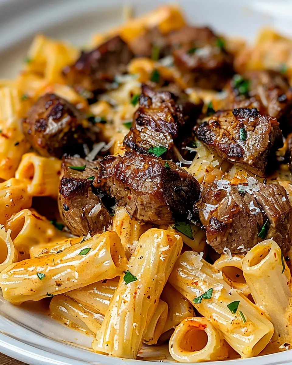 Cajun Steak Tips in Cheesy Rigatoni Parmesan Sauce is a delightful dish that combines the bold flavors of Cajun steak with a creamy and comforting rigatoni.