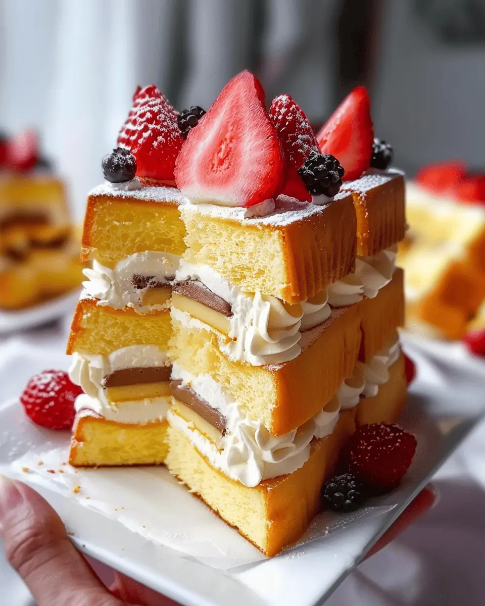 And there you have it—your stunning cake sandwich is ready to impress! Slice it up and serve it at your next dinner party or enjoy it on a quiet evening. Either way, this cake sandwich is bound to be a hit, sparking conversations and smiles all around.