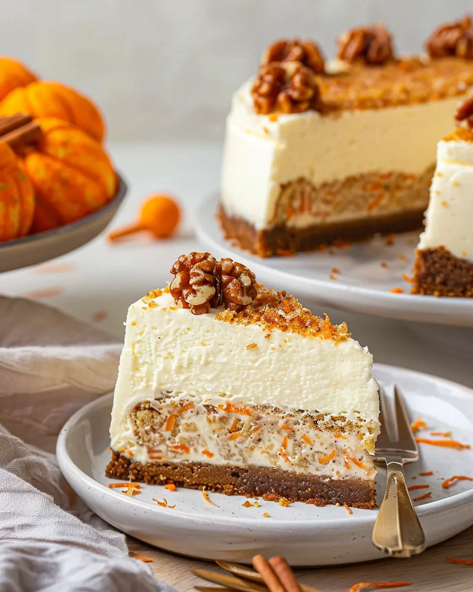 Keywords: Carrot Cake, Cheesecake, Holiday Dessert, Easy Dessert, Indulgent Dessert