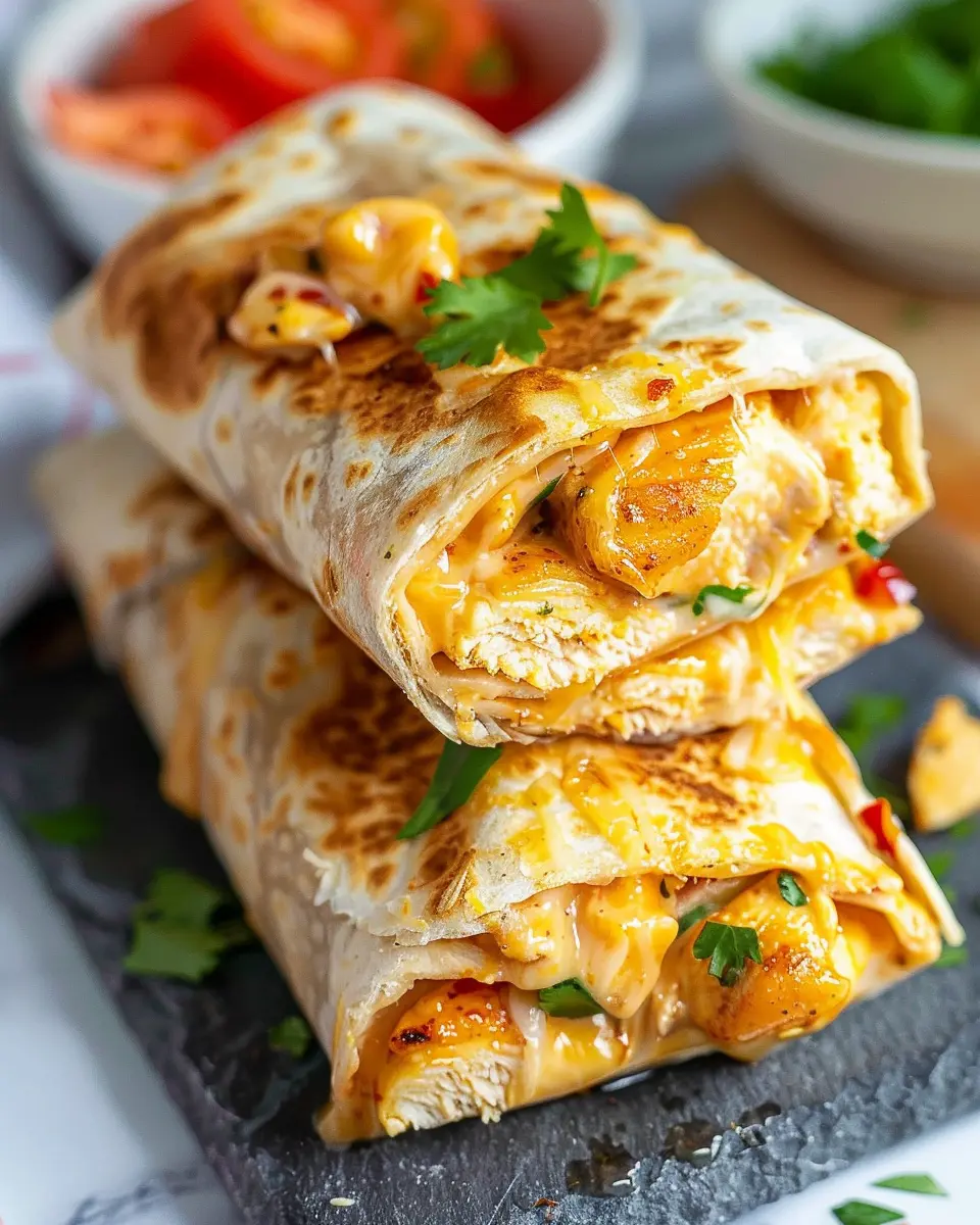 Home » Recipes » Cheesy Garlic Chicken Wraps: Easy and Indulgent Weeknight Delight