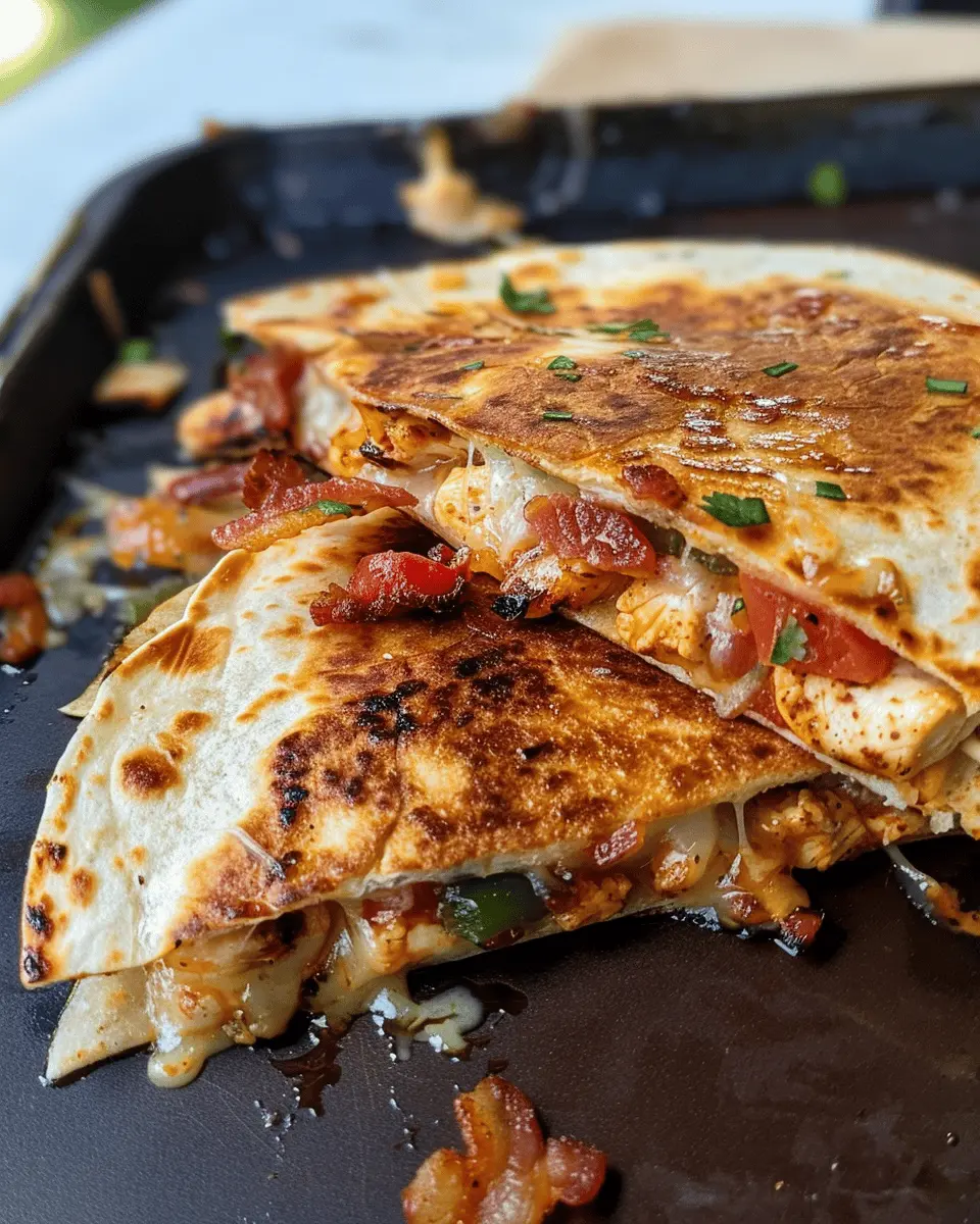 In closing, chicken bacon ranch quesadillas are not just a meal; they’re an experience—each bite bursting with flavor and satisfaction. This recipe is incredibly versatile, allowing you to customize it with your favorite ingredients or sauces. Packed with protein-rich chicken, savory turkey bacon, and gooey cheese, it’s a hearty option for busy weeknights or a weekend gathering with friends.