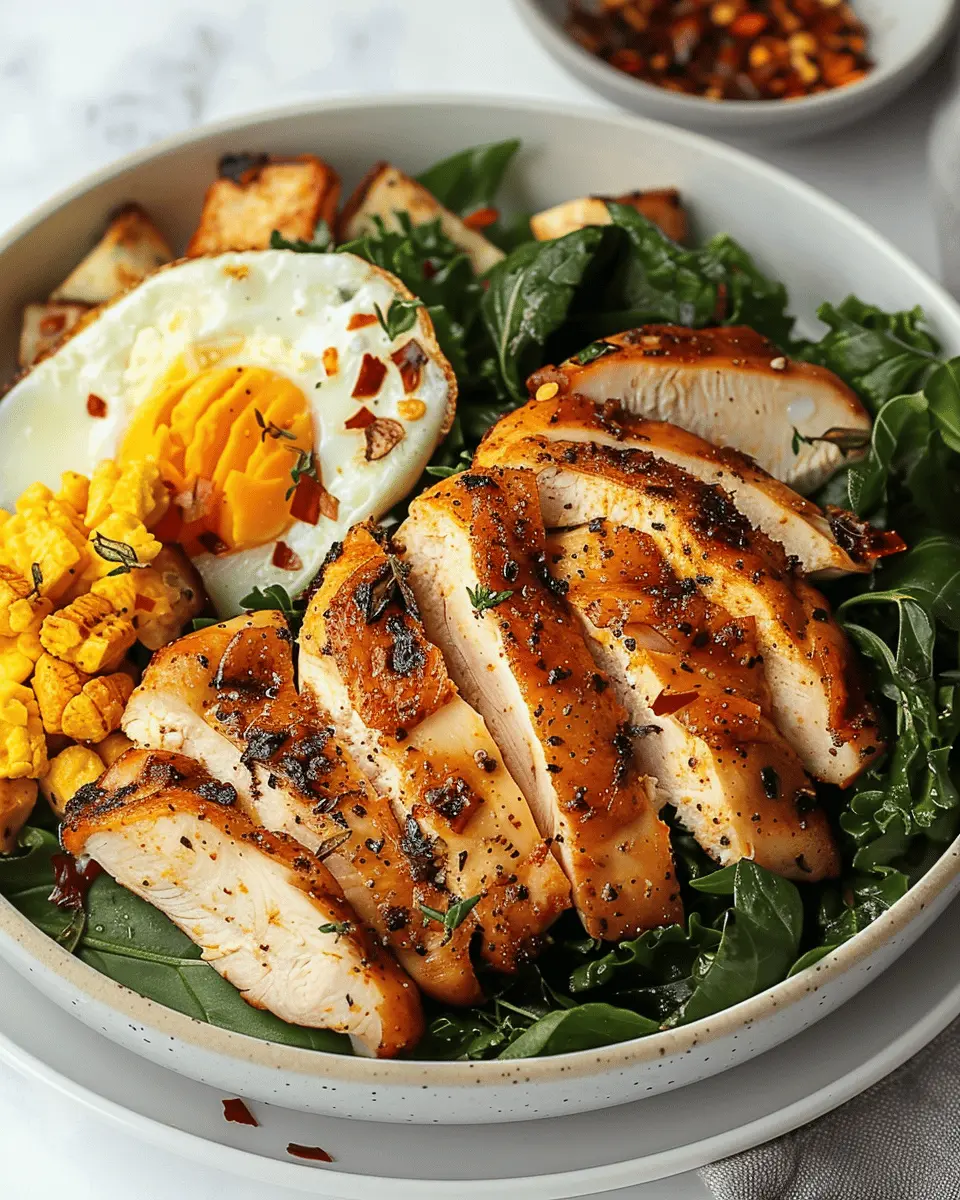 • Sauces and Dressings: Consider drizzling a zesty lemon vinaigrette or a savory garlic tahini sauce over your plate. These add flavor depth without overpowering the deliciousness of the chicken and egg.