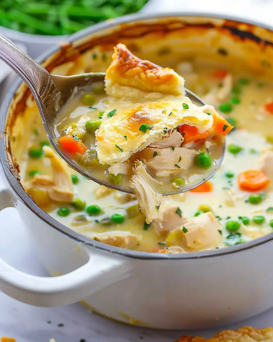Absolutely! Chicken Pot Pie Soup is perfect for meal prep. You can prepare the soup a day in advance and store it in the fridge. Just make sure to let it cool completely before transferring it to an airtight container. When you’re ready to enjoy it, simply reheat it on the stove. If you find the soup has thickened too much, no worries—just add a little chicken broth or vegetable stock to bring it back to the perfect consistency.