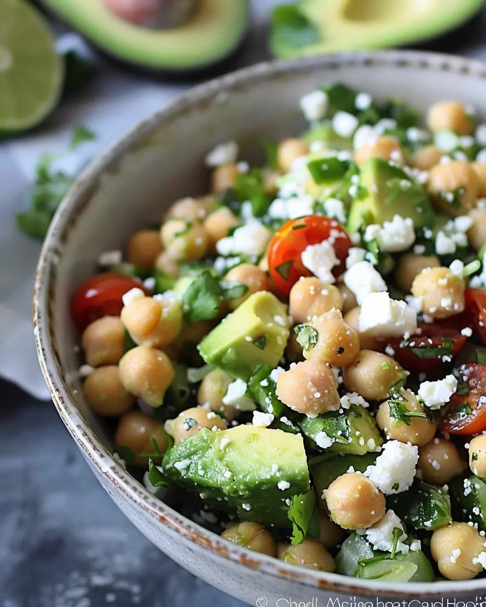 A refreshing salad that combines chickpeas, avocado, and feta cheese for a delicious and nutritious meal.