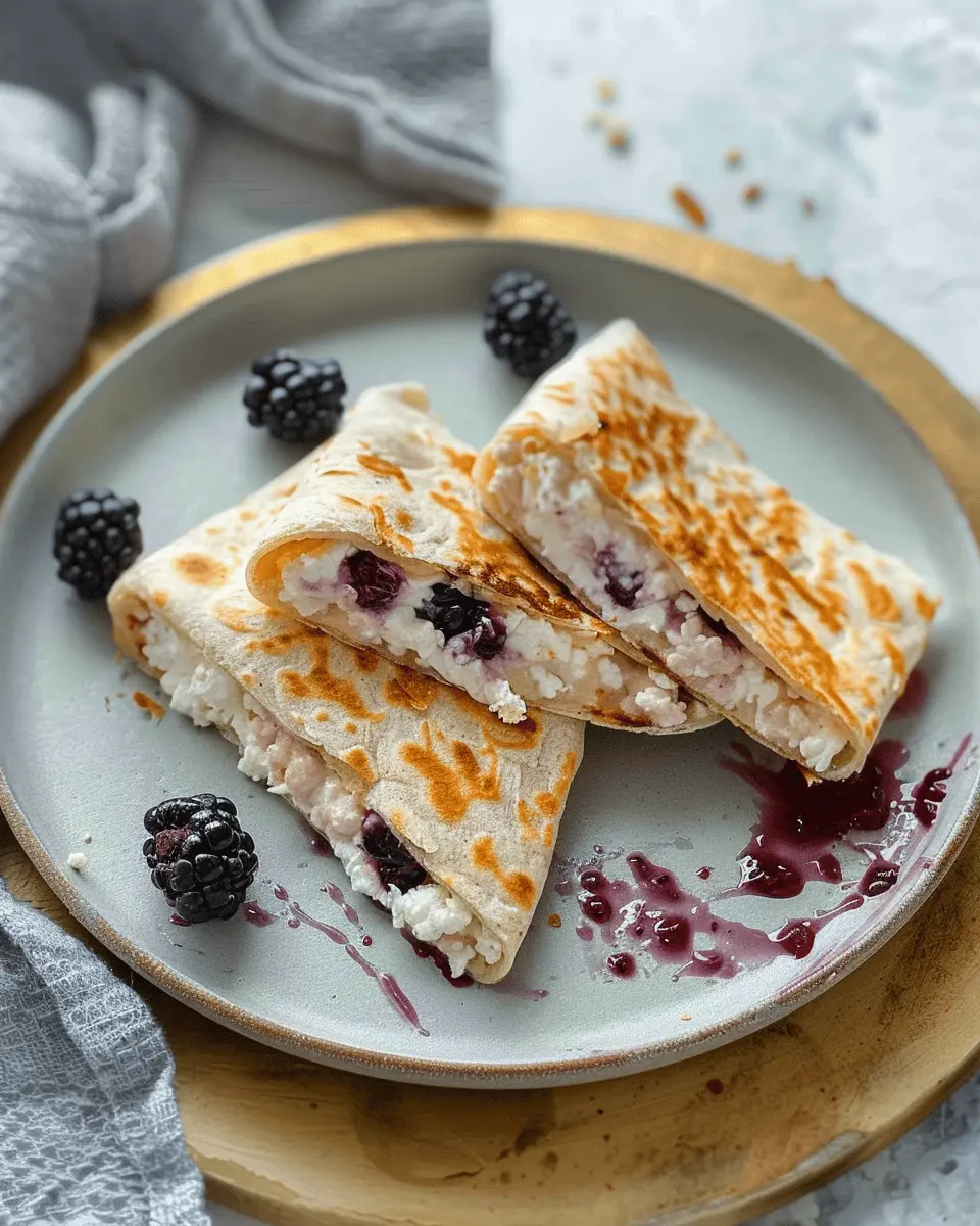 A delicious wrap featuring high-protein cottage cheese and sweet blackberries, perfect for a healthy snack or light meal.