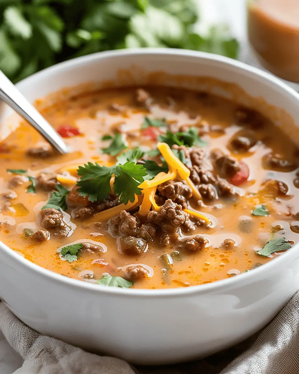 Imagine coming home from work to the heavenly aroma of spices and cheese wafting through your kitchen. This soup not only warms the heart but also allows for creativity—feel free to experiment with toppings like avocado, cilantro, or even a splash of lime juice. Savor the rich flavors and textures that this dish brings, and you’ll be looking forward to seconds! If you’re curious about variations, check out Food Network for inspiring twists. Make this delicious soup part of your culinary repertoire today!