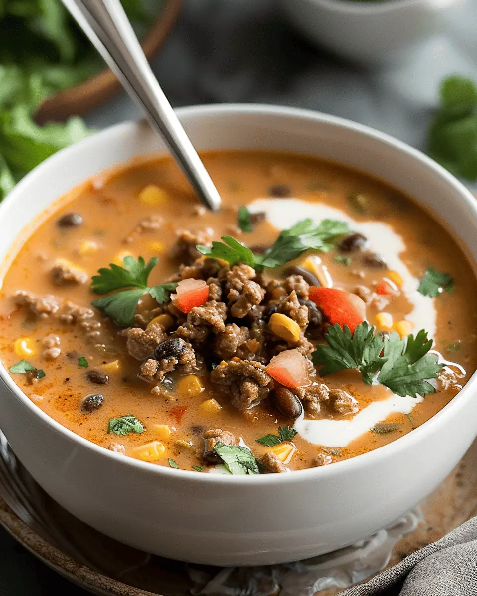 If you’re searching for a cozy and comforting meal that packs a punch in flavor, look no further than this Creamy Cheesy Ground Beef Taco Soup Recipe. This delightful dish combines all the mouth-watering flavors of your favorite tacos into a warm, hearty soup that’s perfect for any occasion. Whether you’re winding down after a long workday or hosting a casual gathering with friends, this soup is bound to impress.