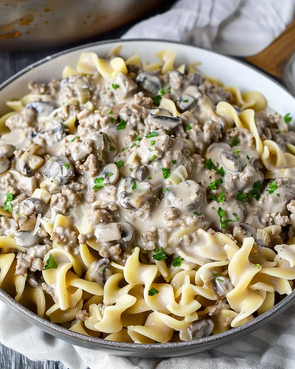 Keywords: Creamy Ground Beef Stroganoff, comfort food, beef stroganoff recipe