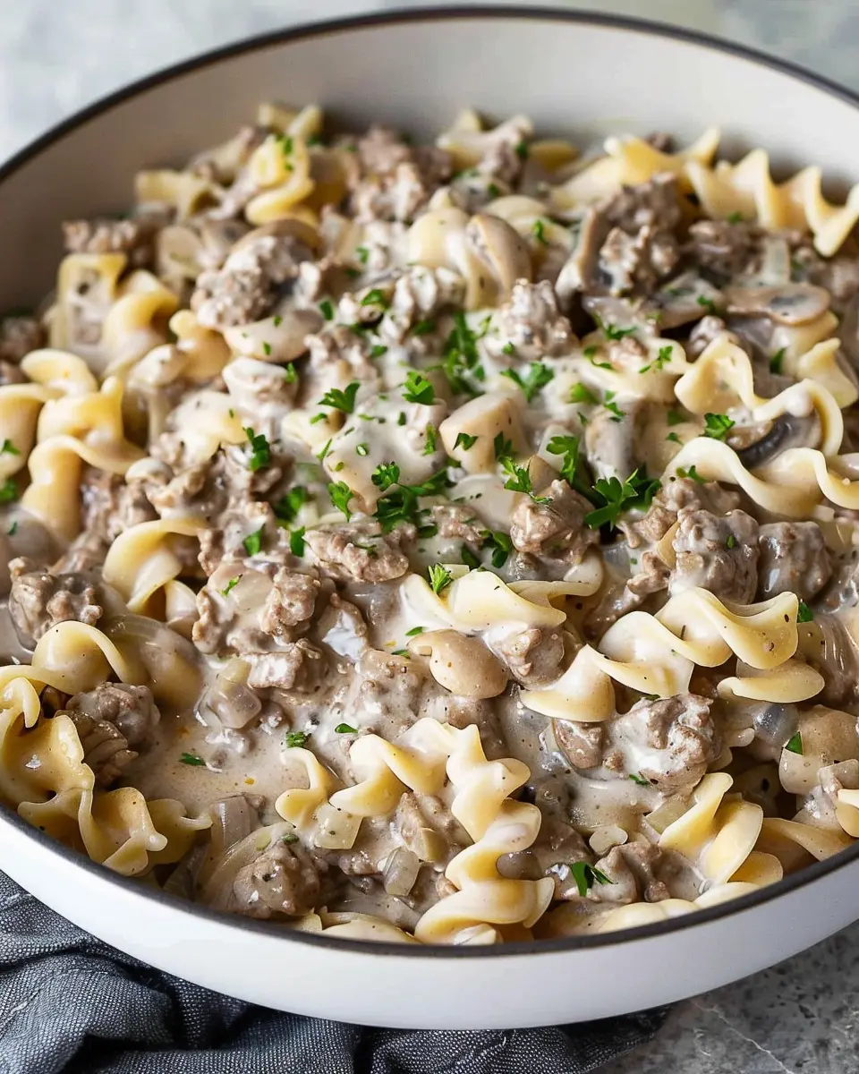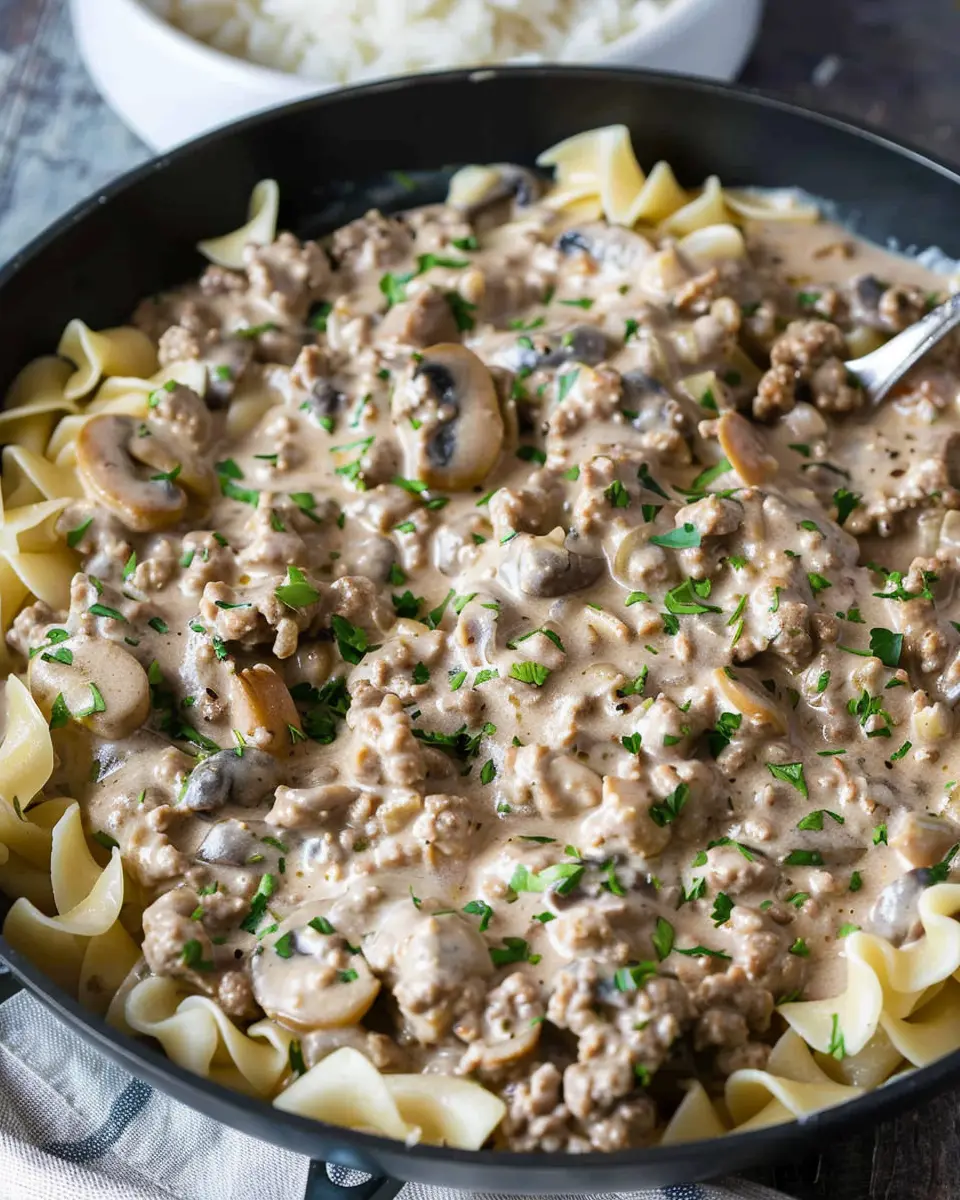 A rich and creamy ground beef stroganoff that is simple to prepare and perfect for a cozy dinner.
