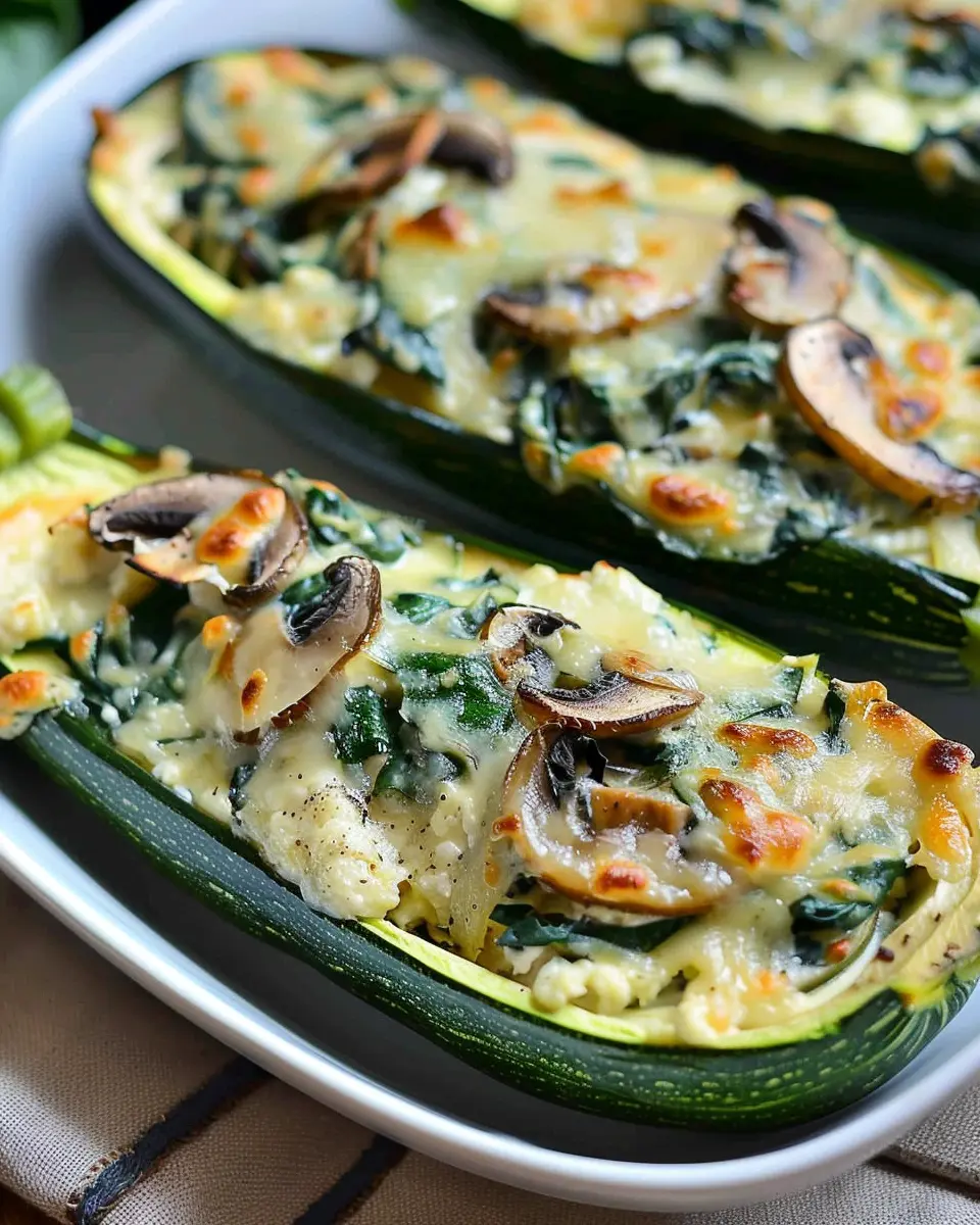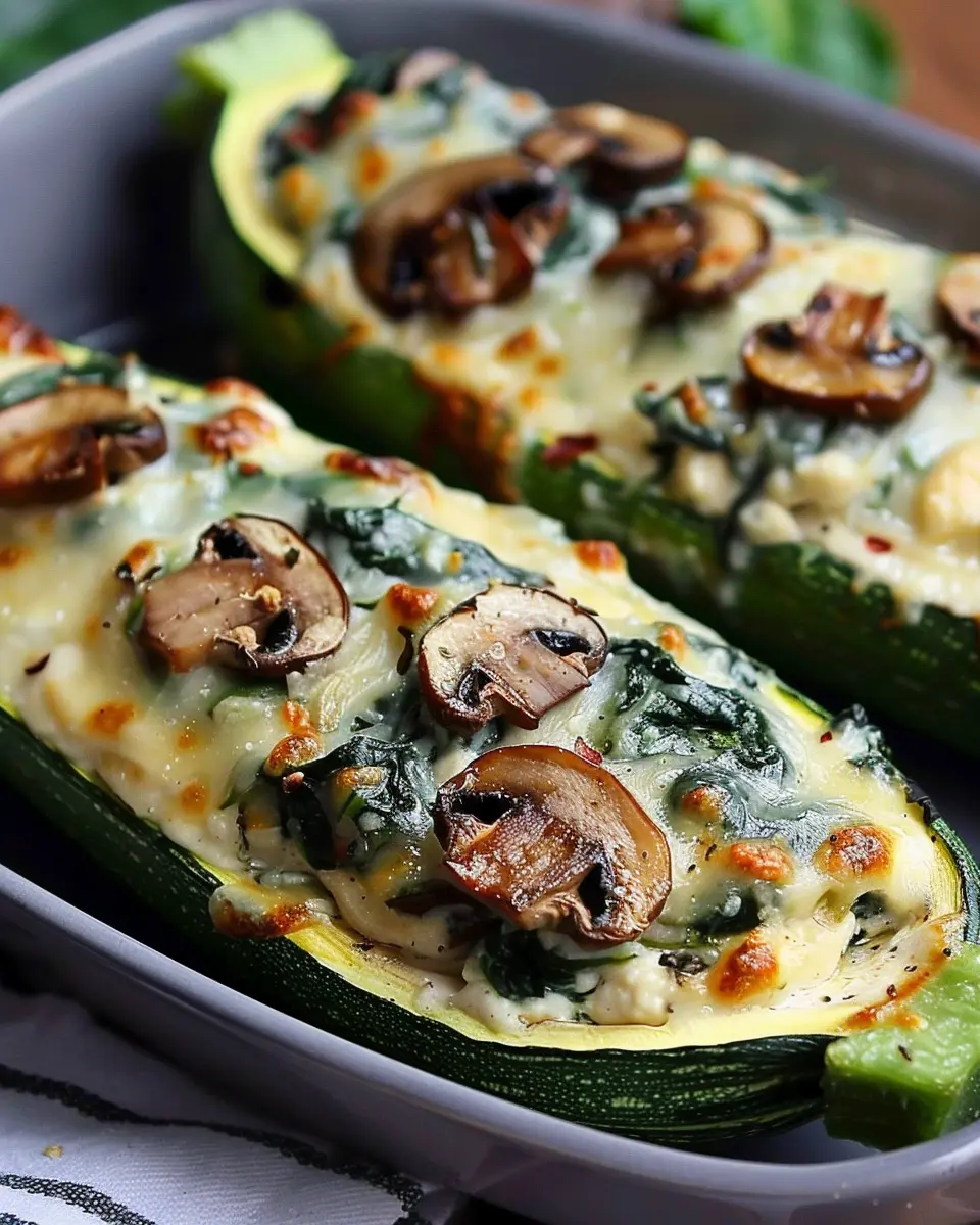 Keywords: Creamy Ricotta-Stuffed Zucchini, Spinach, Mushrooms, Easy Recipe