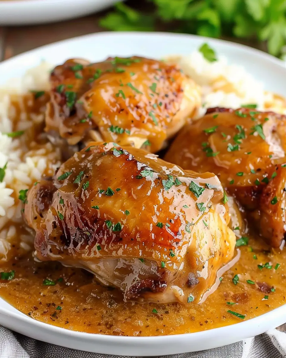 Drizzle the rich gravy over the tender chicken thighs, and serve it with creamy mashed potatoes or crusty bread. You can find even more delicious ideas at sites like Food Network and Taste of Home.