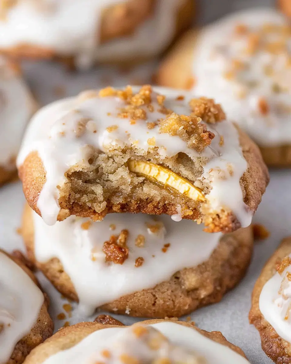 Once your cookies have cooled down, drizzle the cream cheese glaze over them. Feel free to get creative—swirls, drips, or a simple dip will look great. For an extra touch, sprinkle some chopped nuts or a dusting of cinnamon on top.