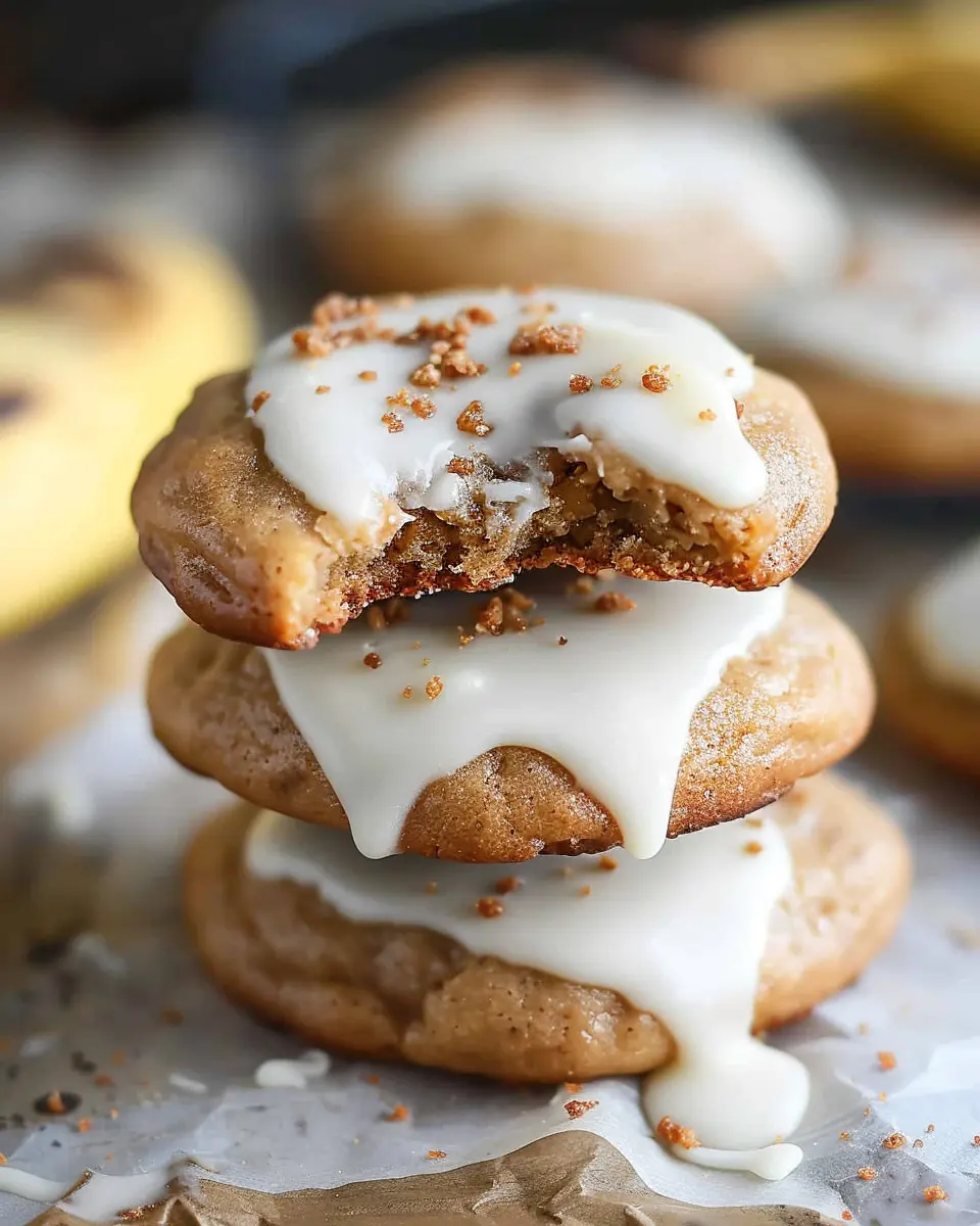 PrintCrumbl Banana Bread Cookies: Indulgent Cream Cheese Glaze Recipe