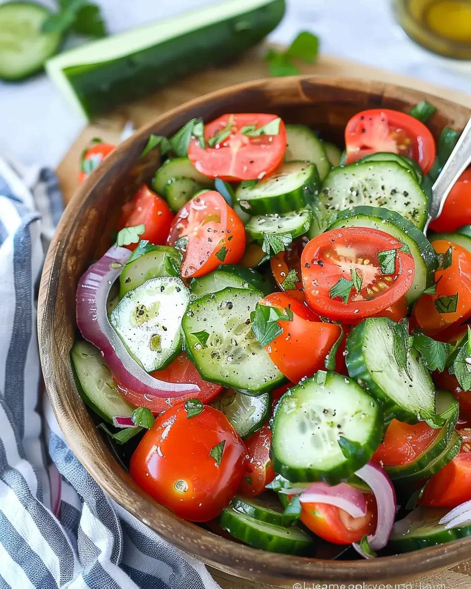 In conclusion, making a Cucumber Tomato Salad is a delightful way to treat yourself to fresh flavors while keeping your cooking time in check. Ready to make some? Let’s dive into the full recipe!