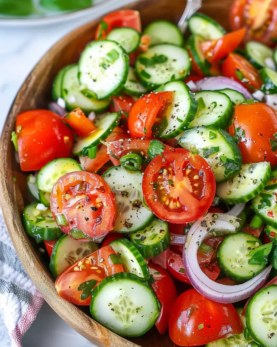 A light and refreshing Cucumber Tomato Salad perfect for summer gatherings.