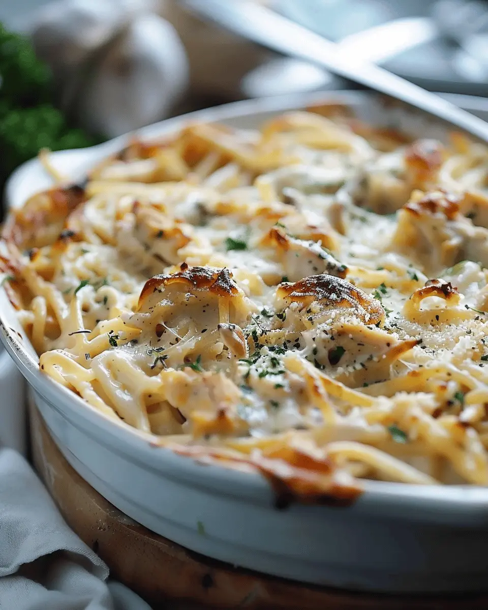 For a gourmet flair, try garnishing with fresh herbs, like parsley or chives, just before serving. It adds color and freshness, making your deluxe chicken tetrazzini truly shine.