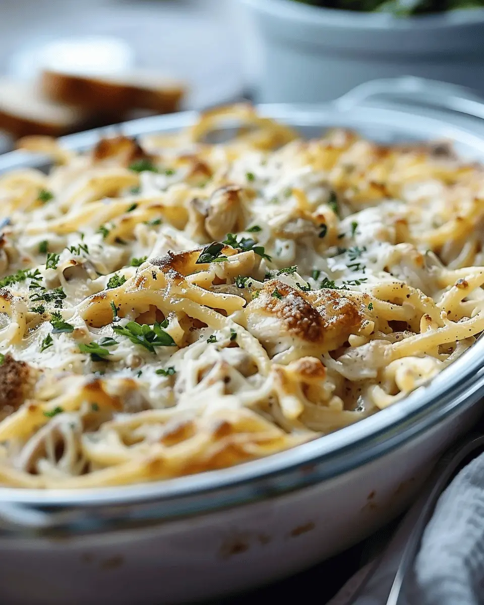 Keywords: Deluxe Chicken Tetrazzini, creamy pasta, chicken pasta dish