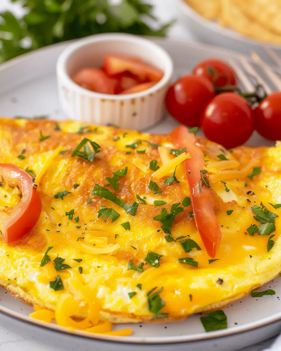 Eating a breakfast rich in protein can give you the much-needed energy boost to tackle your day. Eggs, the star of our omelette, are packed with high-quality protein and essential nutrients. Pairing eggs with veggies and a sprinkling of cheese not only enhances flavor but also adds valuable vitamins and minerals to your diet.