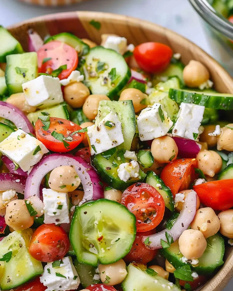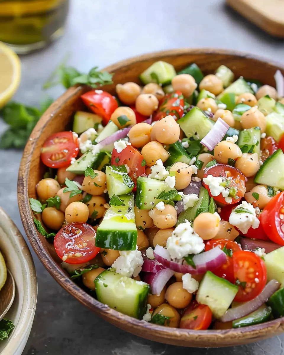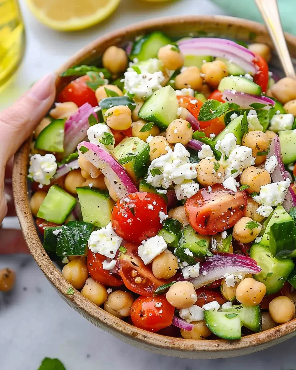Chickpeas are often touted as a superfood, and it’s easy to see why. Rich in protein, fiber, and essential vitamins, they offer an incredible base for a variety of meals. Why not add some feta cheese for a tangy twist? Feta not only complements chickpeas beautifully but also adds a creamy texture and makes the salad a true flavor explosion.