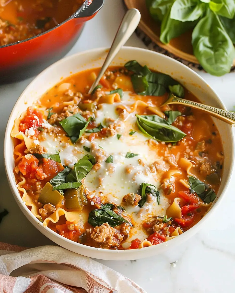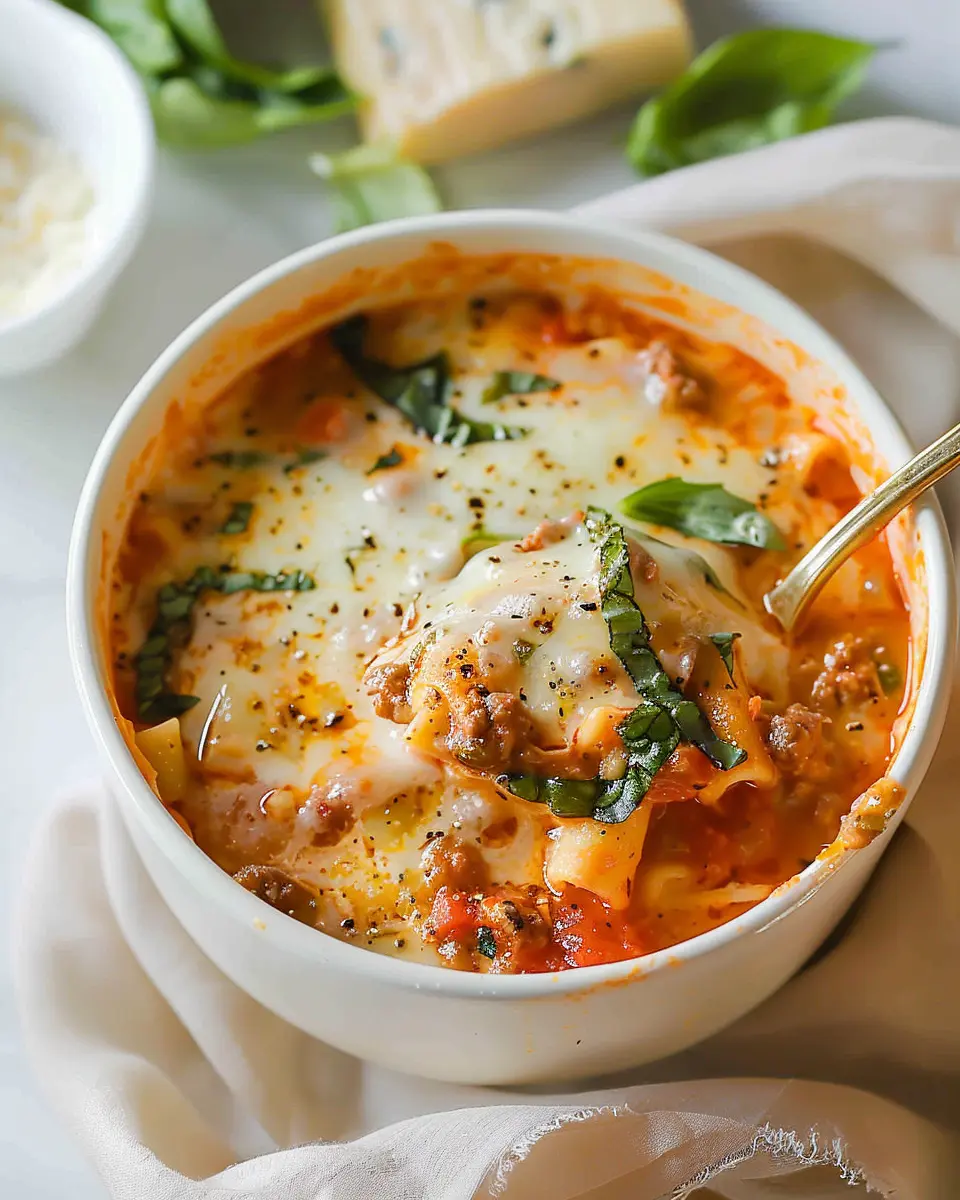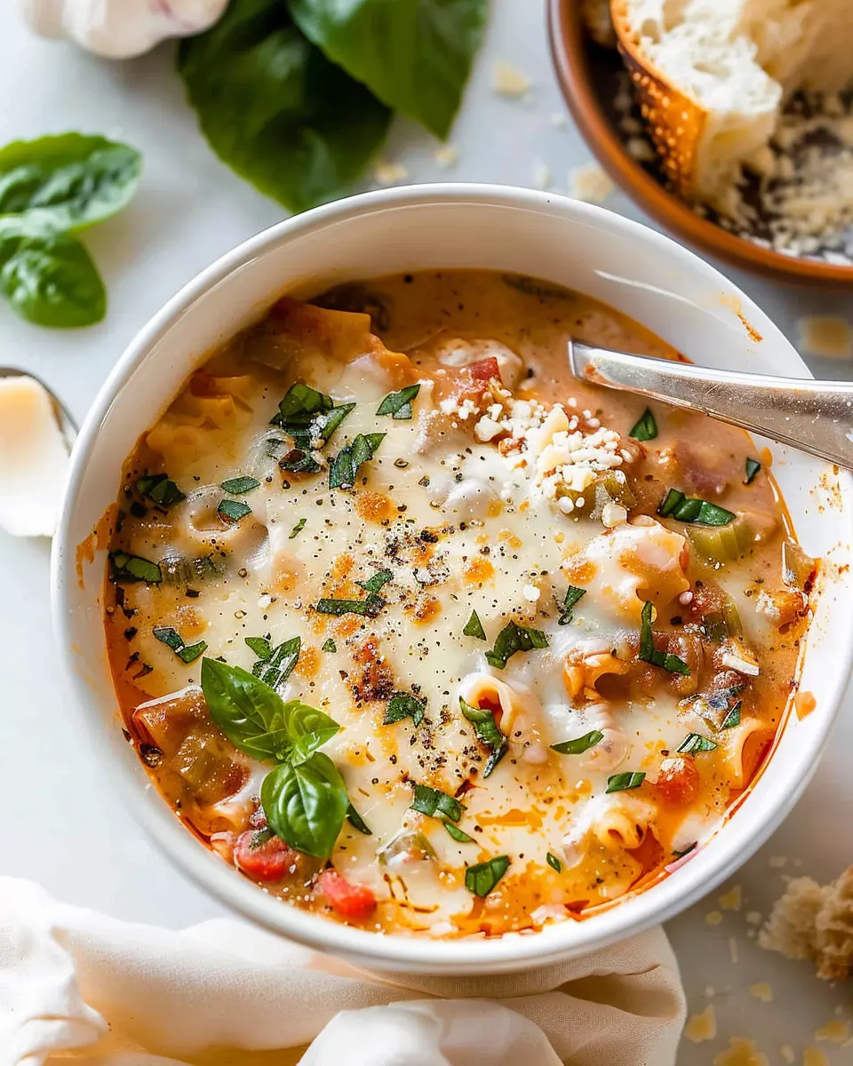A warm and comforting soup that combines the rich flavors of traditional lasagna into a creamy broth.