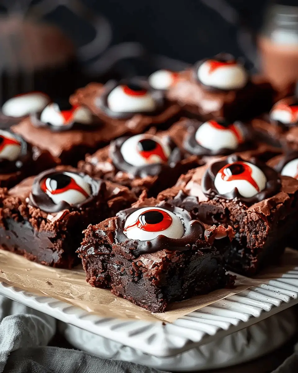 Just imagine slicing into these gooey treats and seeing those spooky eyeballs staring back at you! Grab your loved ones, get creative, and make these brownies a Halloween favorite.