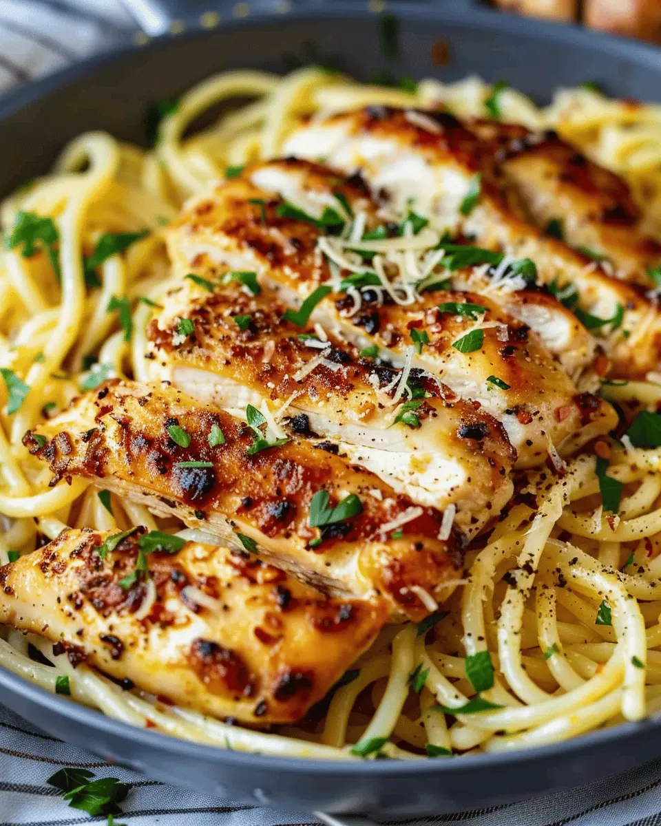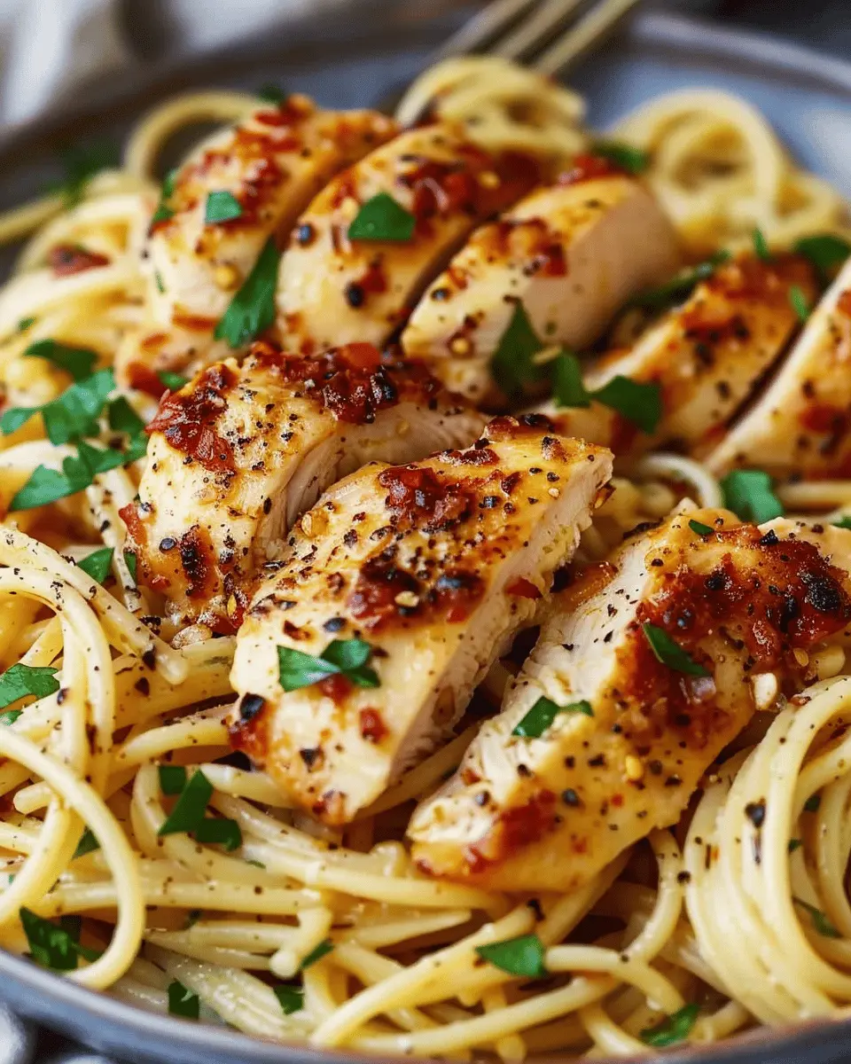 - Plate It Up: Serve the pasta in bowls, layering the sliced chicken on top. Garnish with freshly chopped parsley or basil for a pop of color and freshness.