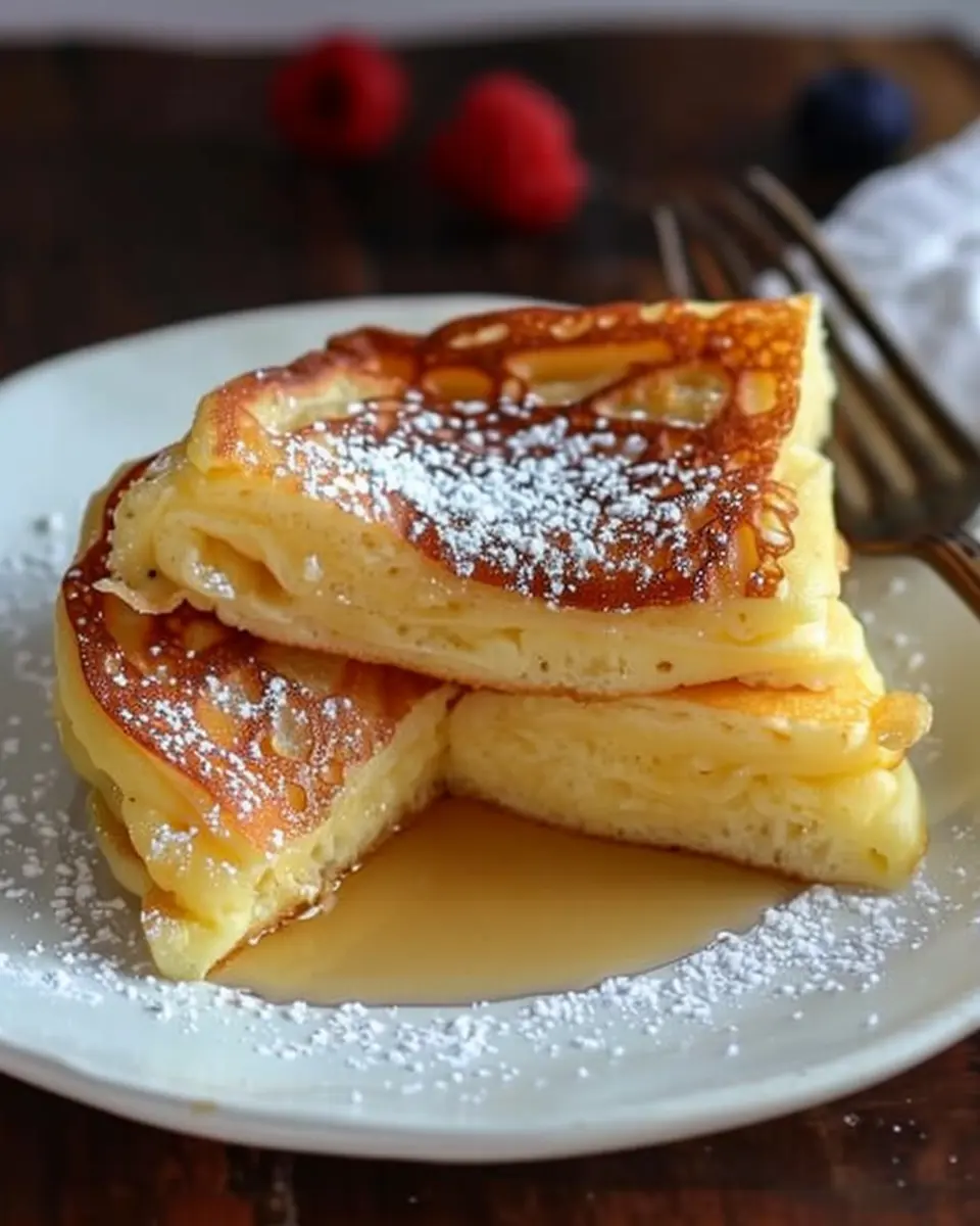 Classic Toppings: Top your pancakes with a sprinkle of powdered sugar, fresh berries, and a drizzle of maple syrup. The sweetness complements the pancake’s fluffiness perfectly!