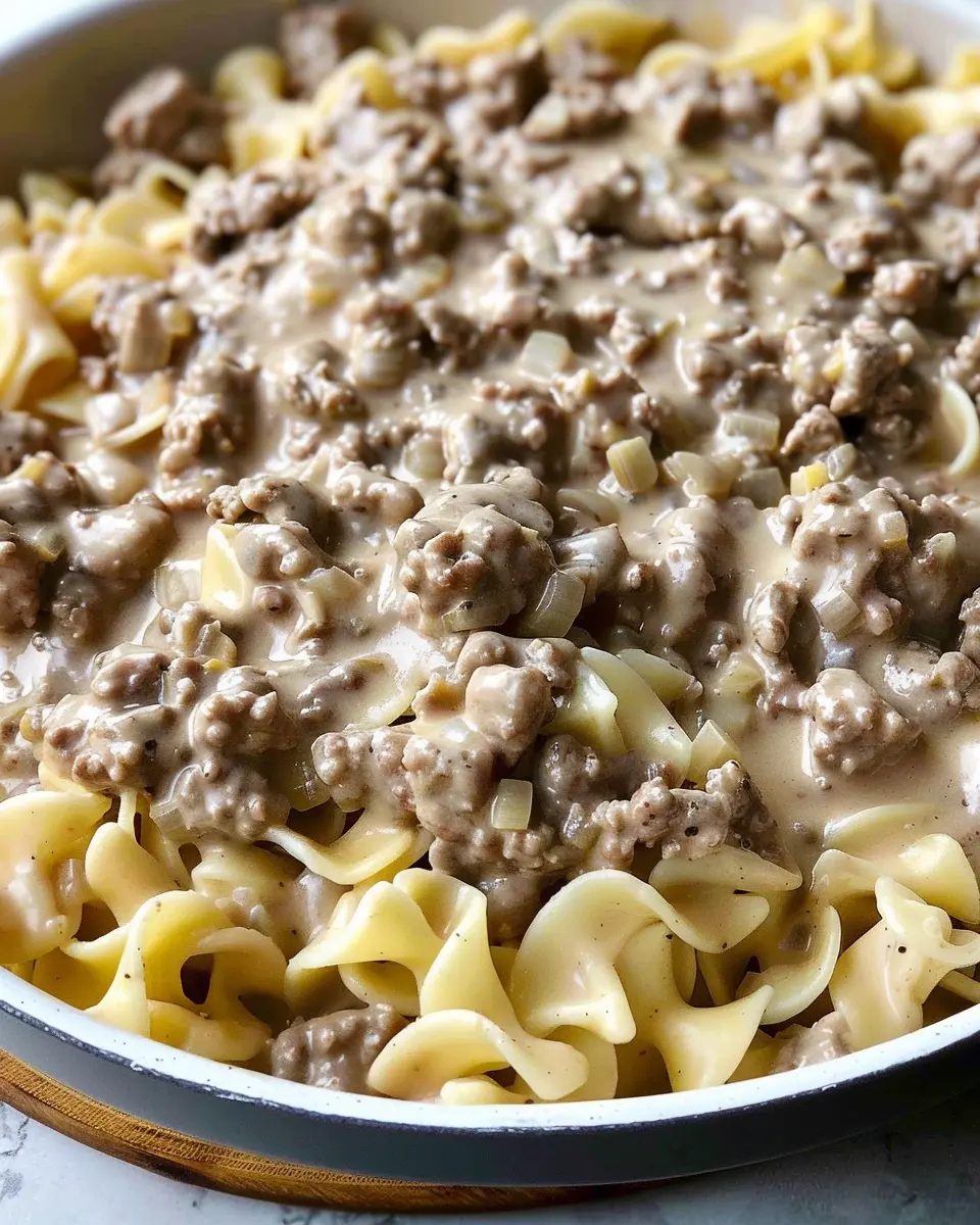 A comforting dish featuring tender ground beef in a creamy sauce, perfect for family dinners.