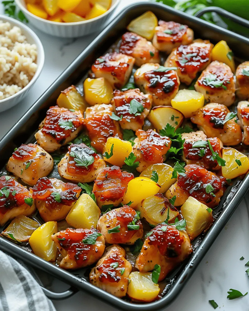 A delicious and easy-to-make Hawaiian Chicken Sheet Pan recipe that combines sweet and savory flavors, perfect for family meals.