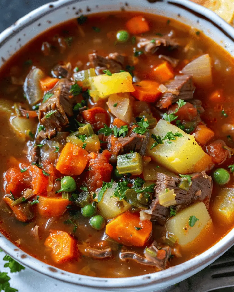 The Hearty & Comforting Vegetable Beef Soup is more than just a meal; it’s a cozy embrace in a bowl. Packed with tender beef, vibrant vegetables, and a rich, flavorful broth, it brings warmth and satisfaction to your table. Each spoonful serves as a reminder of home, often evoking cherished memories of family gatherings. Its versatility allows you to tweak ingredients based on what you have, making it a dish that’s as comforting as it is convenient.