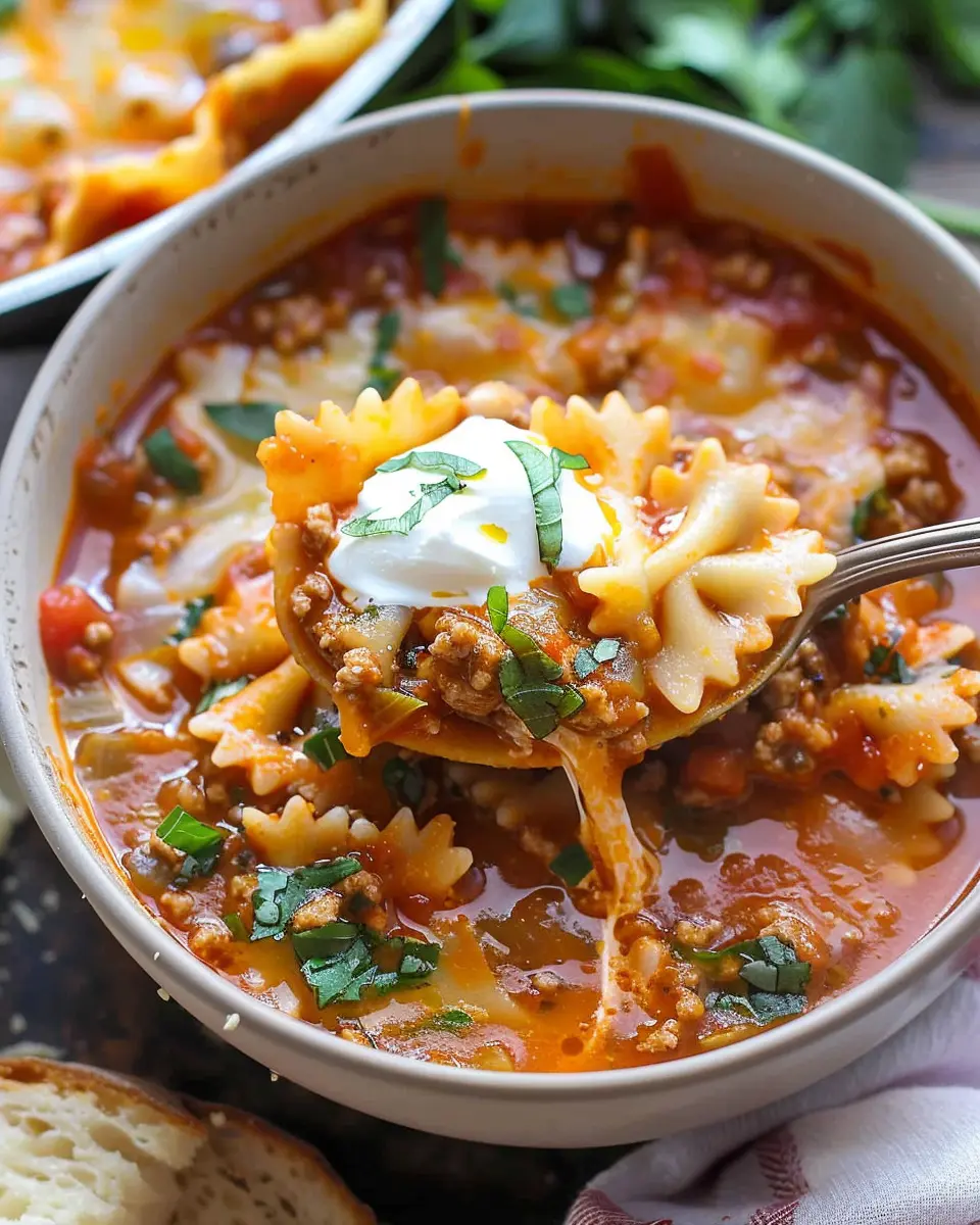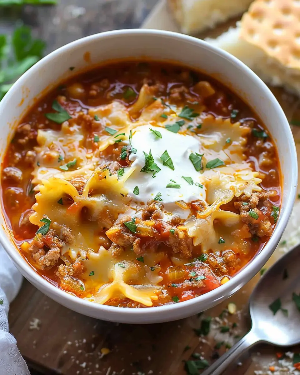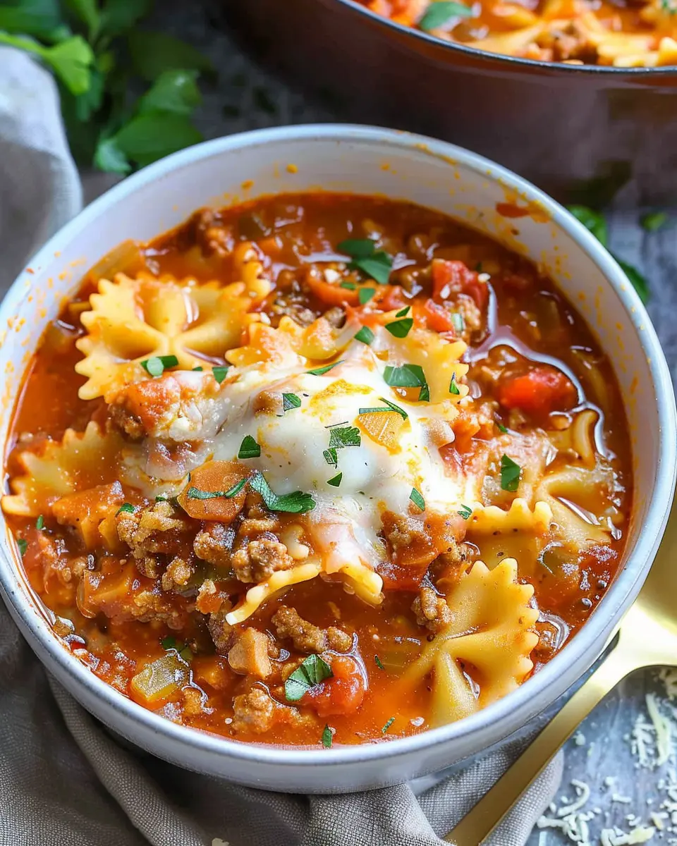 PrintHearty Lasagna Soup: A Comforting Bow Tie Pasta Delight
