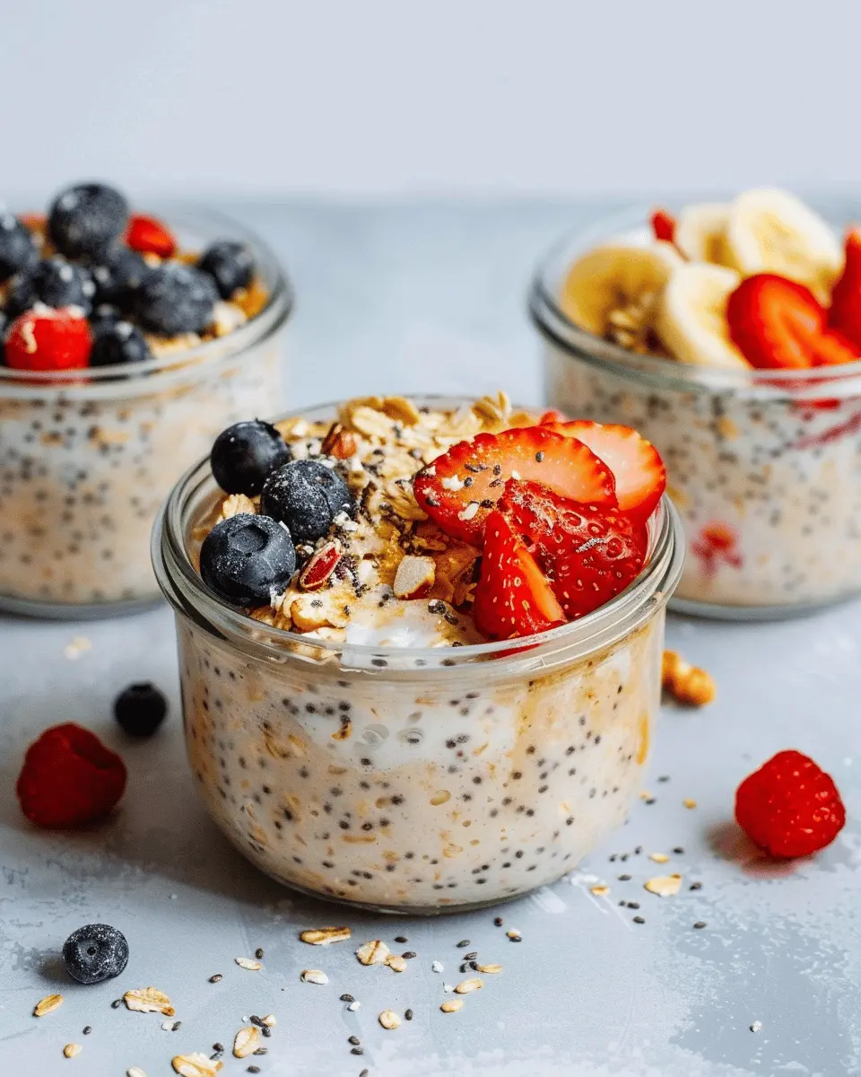 Transform your high-protein overnight oats into a breakfast masterpiece with the right toppings! Consider adding: