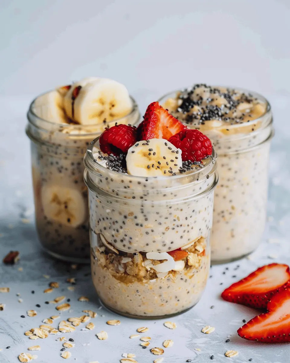Mix, match, and enjoy your high-protein overnight oats as a quick, wholesome meal ready when you wake up!