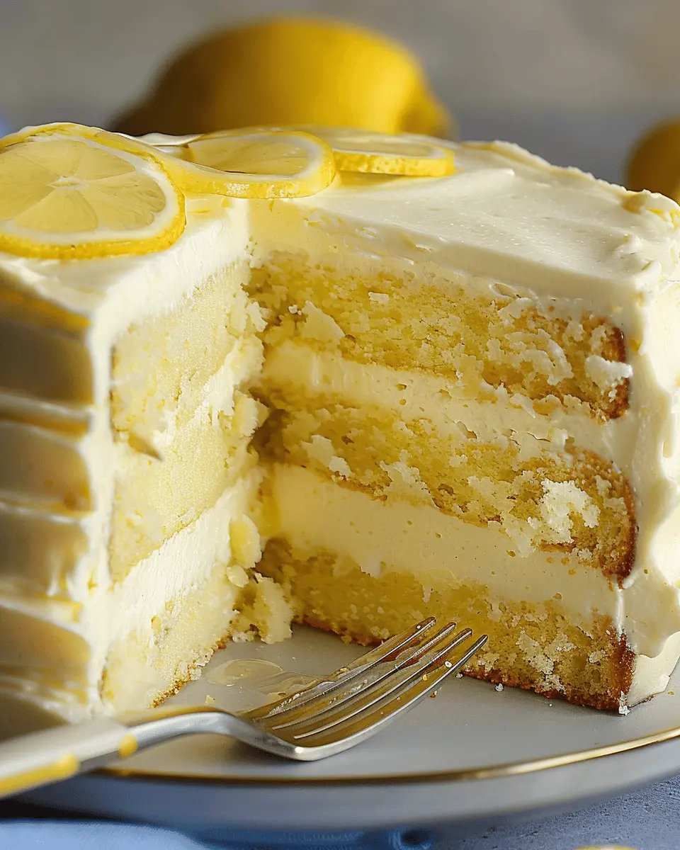 PrintLuscious Lemon Cake: Indulgent Recipe with Creamy Lemon Cream Topping