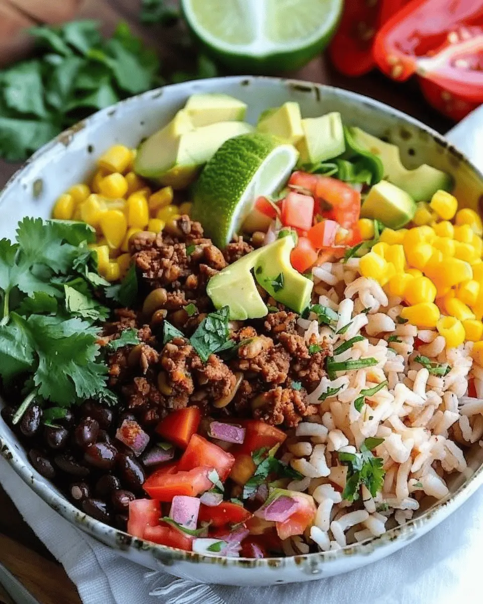 If you want to master the flavor without meat, a vegetarian taco rice bowl is a fantastic choice. Start with a base of fluffy brown rice or quinoa, then pile on your favorite beans, such as black beans or kidney beans, for that protein punch.
