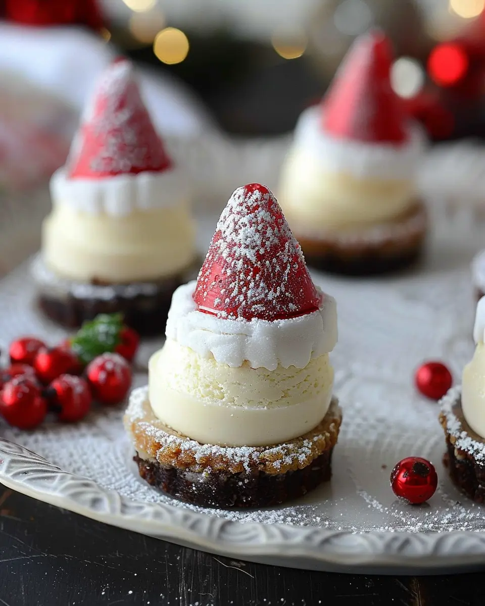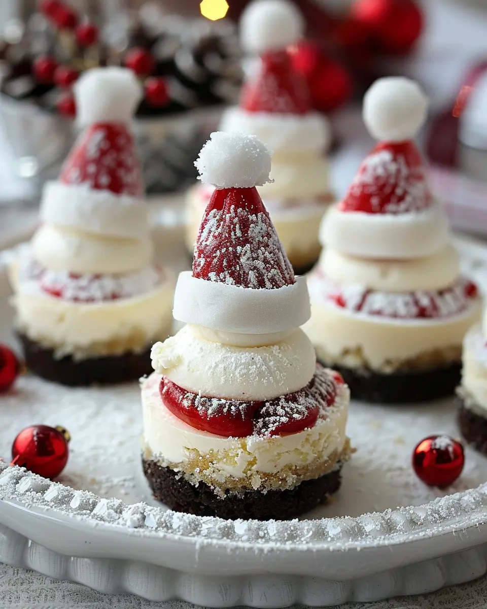 Keywords: Mini Santa Hat Cheesecakes, Holiday Treats, Festive Desserts