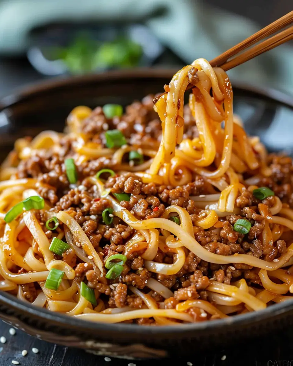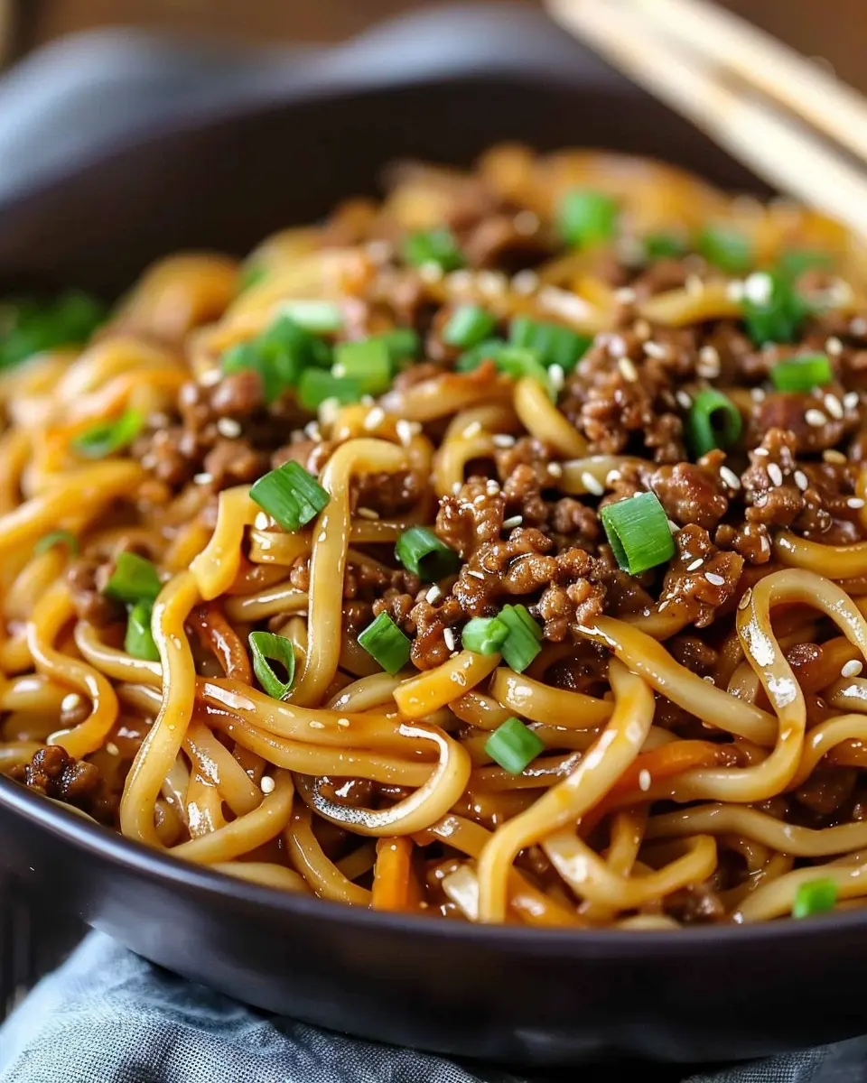 PrintMongolian Ground Beef Noodles Recipe: Easy Comfort Food Delight