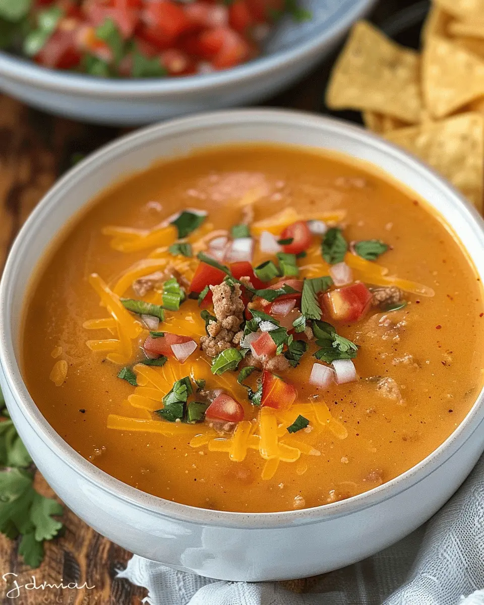Toppings can elevate your nacho cheese soup from good to unforgettable! Consider the following: