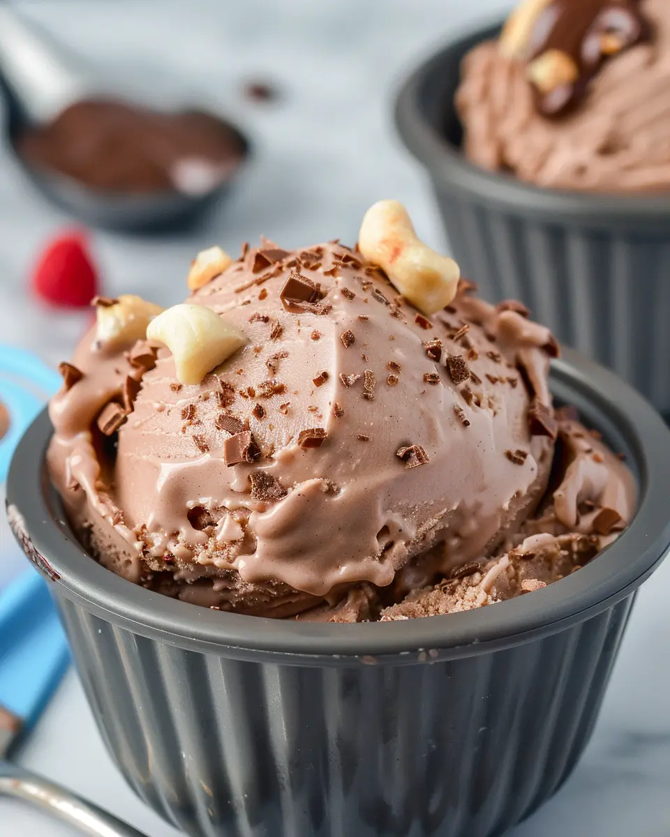 To whip up your vegan-friendly gelato, blend smooth dairy-free chocolate hazelnut spread with your plant-based milk of choice, and follow the same Ninja Creami method. Top it off with crushed nuts or a sprinkle of cocoa nibs to enhance the texture. Your vegan friends will be asking for seconds!