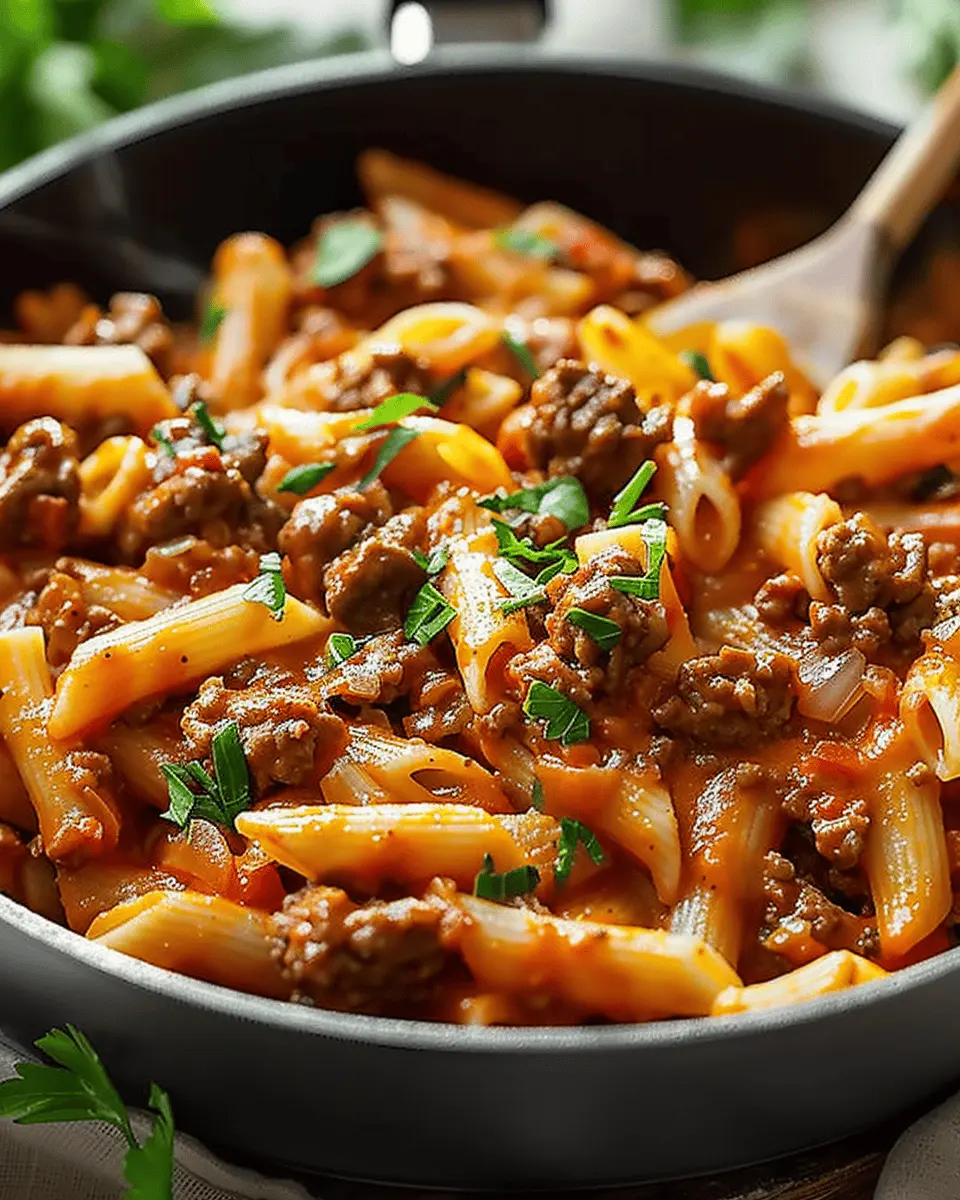 PrintOne Pot Cajun Beef Pasta: Easy Dinner Favorite Under 30 Minutes