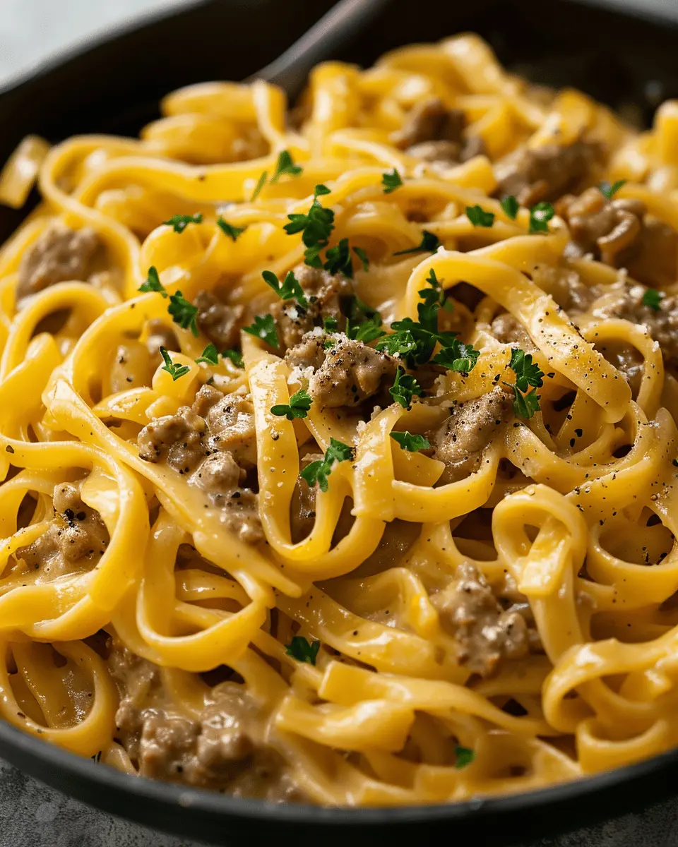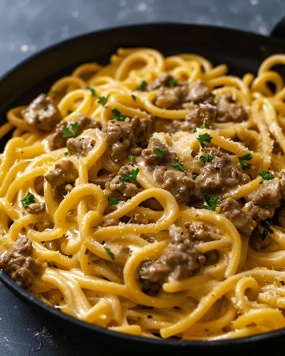 Spoon your creamy beef pasta into bowls, and don’t skimp on garnishing—you want everyone to feel pampered! A few cracks of fresh black pepper and an extra sprinkle of Parmesan go a long way. You can even pair this dish with a simple green salad or crispy garlic bread for a complete meal.