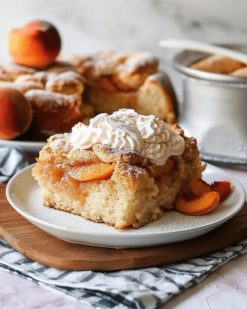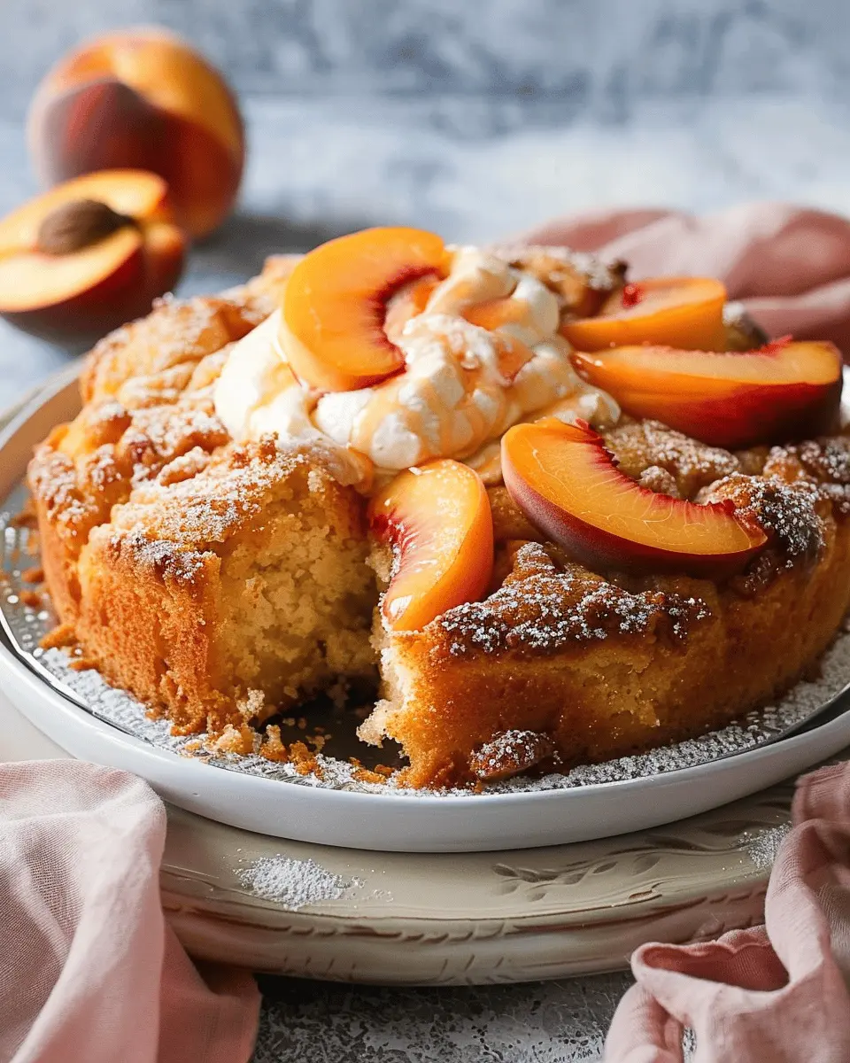 Allow the cake to cool completely before serving. Trust me, the wait will be worth it. The aroma of the baked peaches and cinnamon will have everyone rushing to the kitchen!