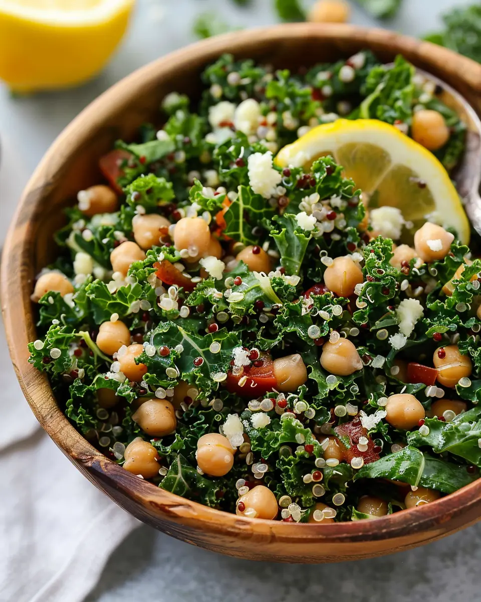 Kale Quinoa Salad: A Refreshing Chickpea Delight with Lemon Vinaigrette
