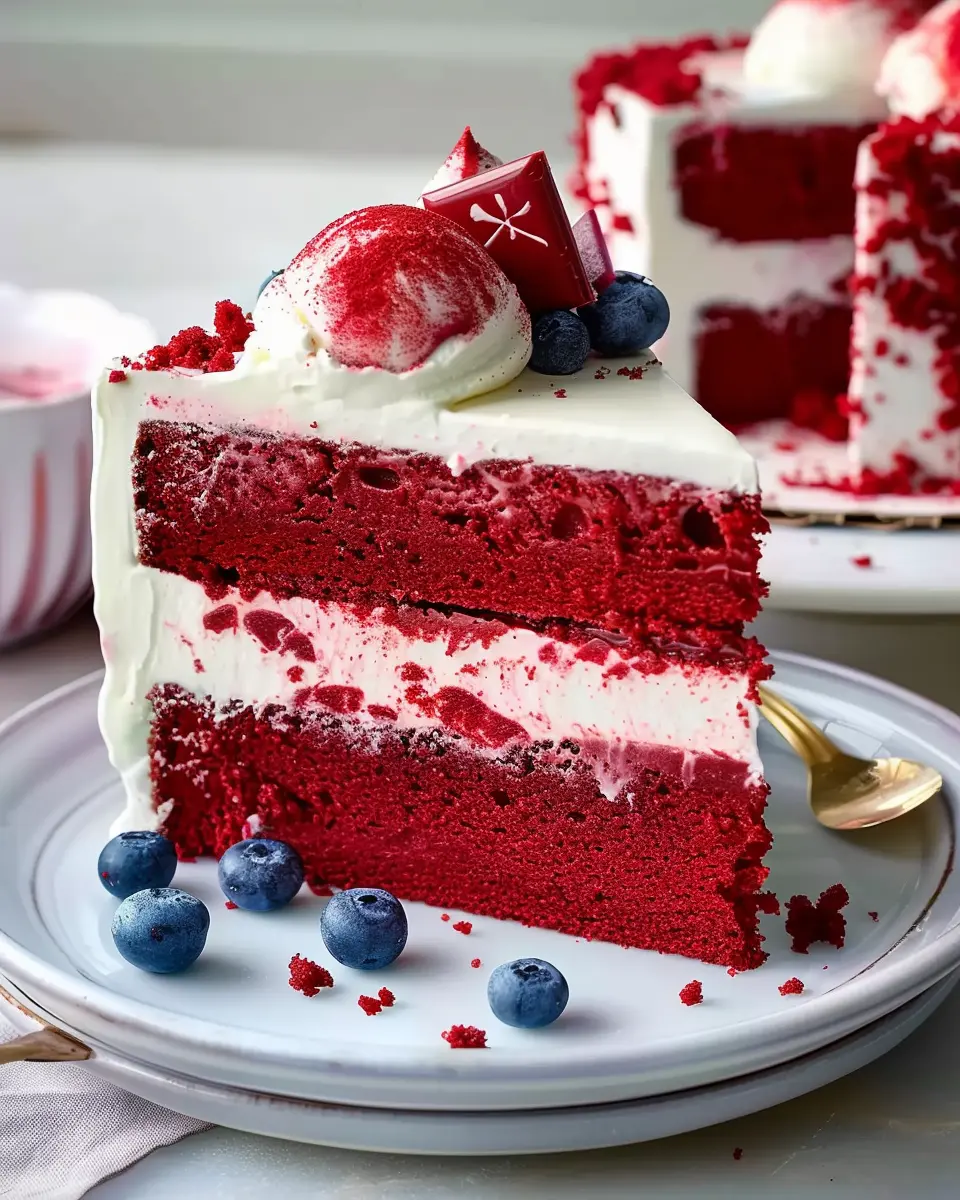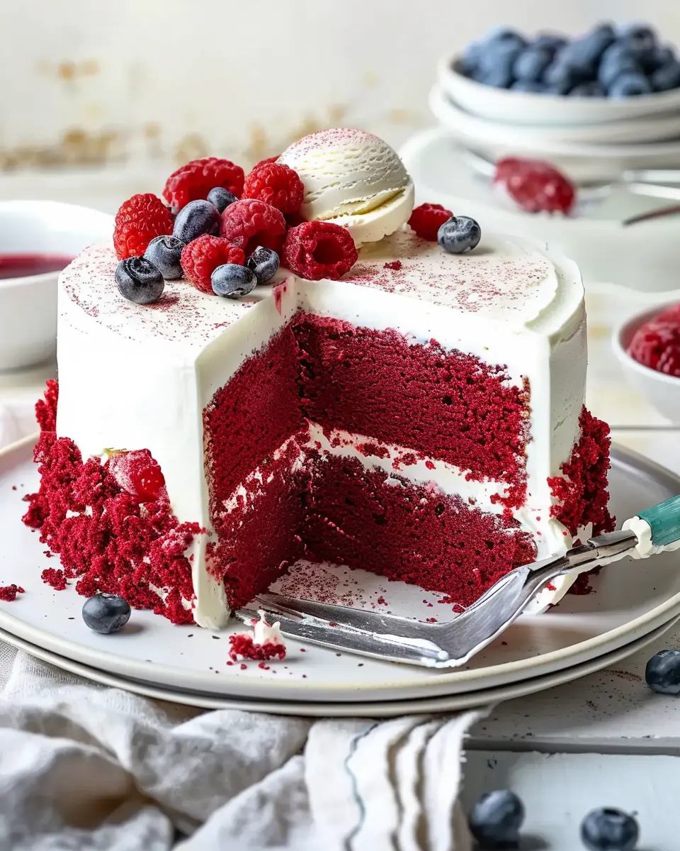 Keywords: Red Velvet Ice Cream Cake, summer dessert, indulgent dessert