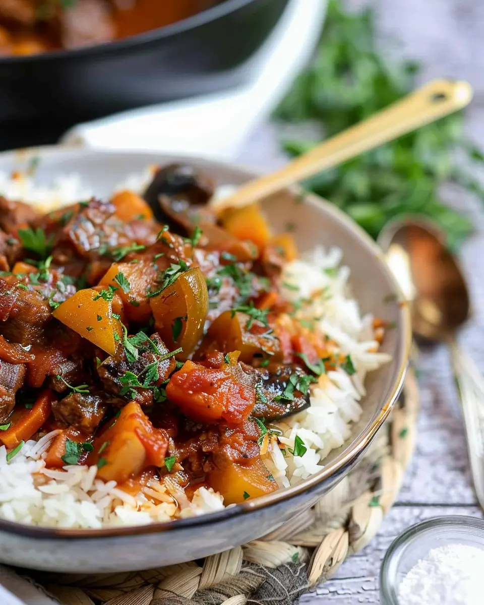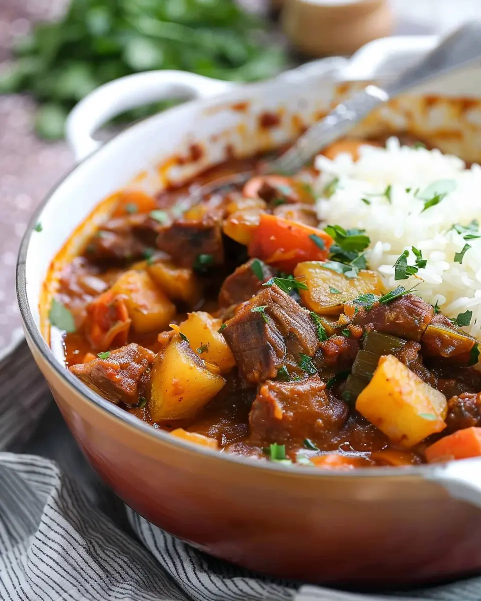 A comforting dish that combines tender beef with delicious vegetables in a rich sauce, perfect for cozy family dinners.
